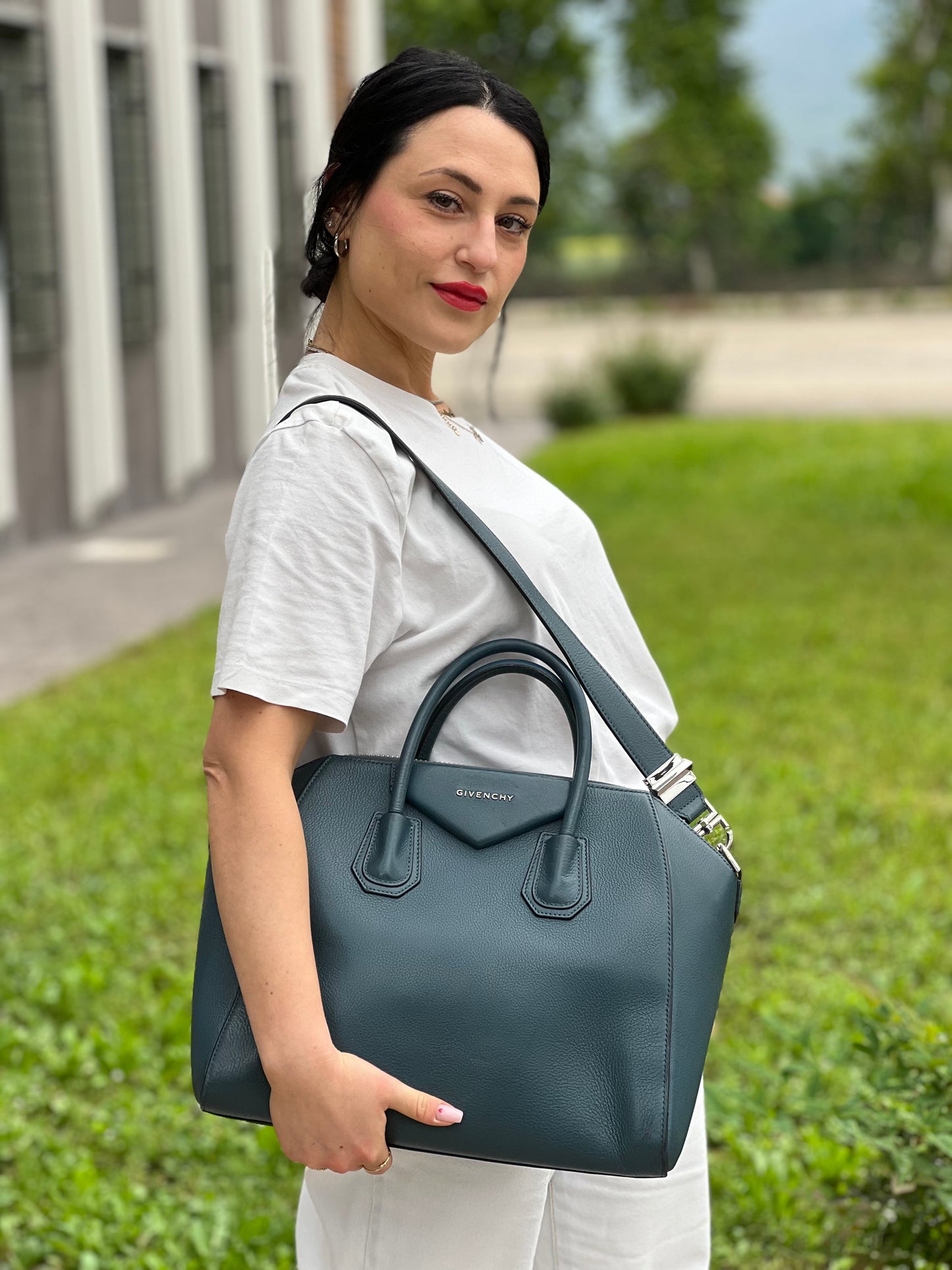 Givenchy bag in pelle blu petrolio da portare a mano oppure a spalla.