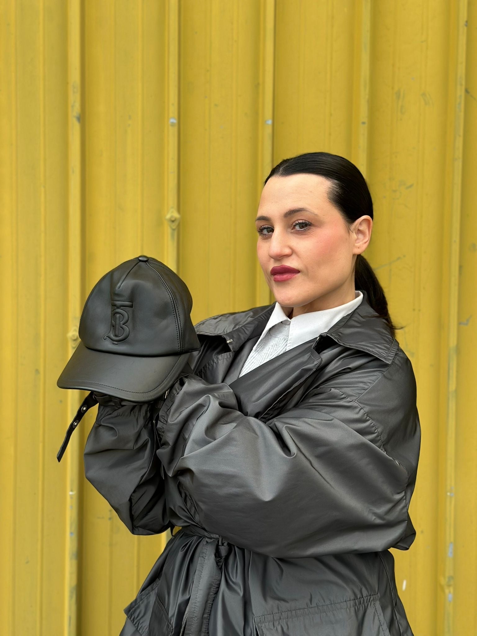 Berretto Burberry in cotone e foderato esternamente in pelle.