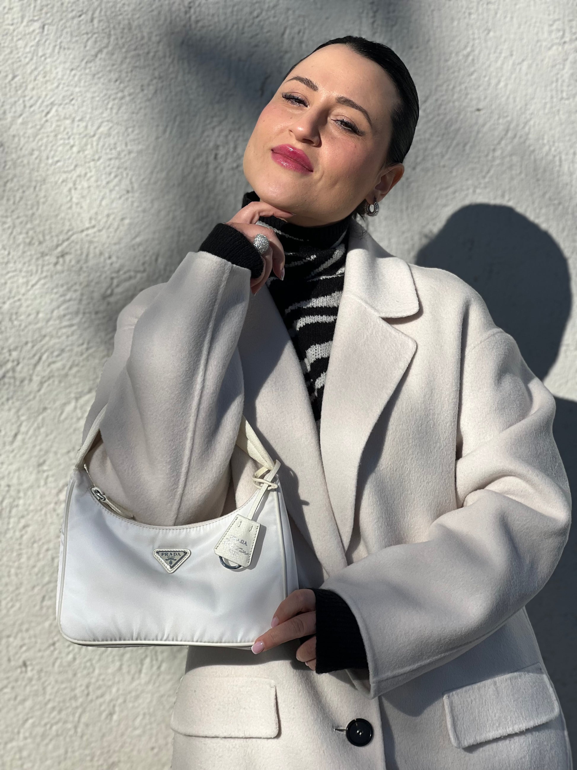 Descrizione: Borsa Prada Re-Edition 2000 in econylon color bianco gesso con dettagli in pelle Saffiano tono su tono e parti metalliche argentate. Completa di corredo.