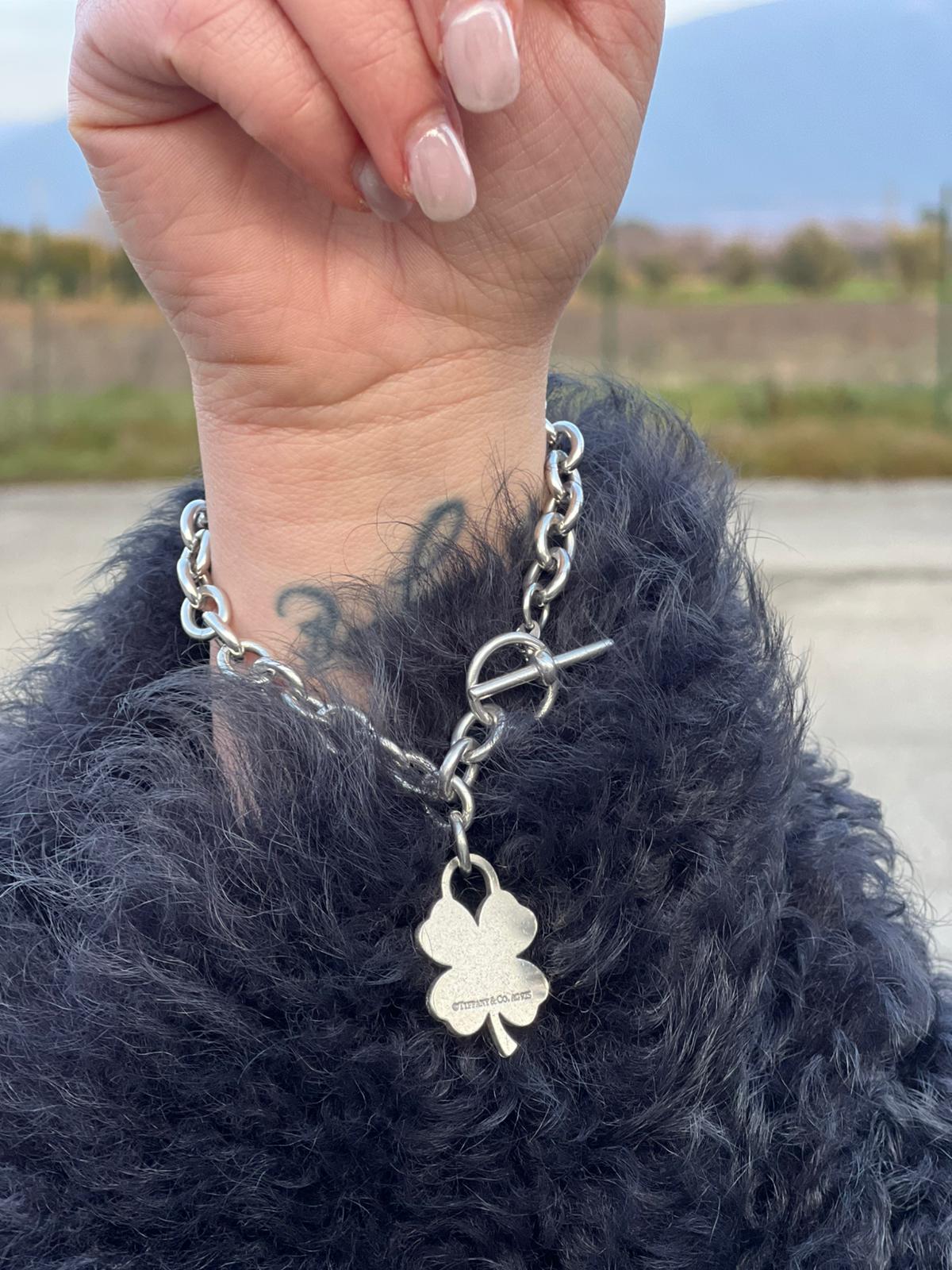 Descrizione: Bracciale Tiffany&Co. in argento 925 con ciondolo quadrifoglio. Full set.