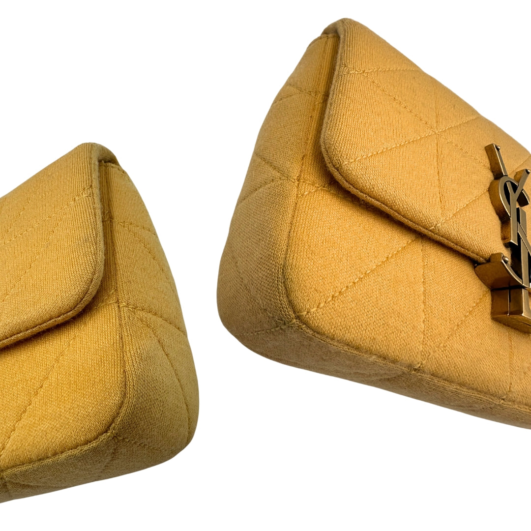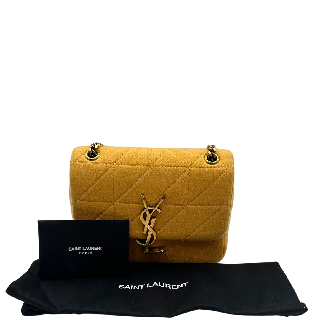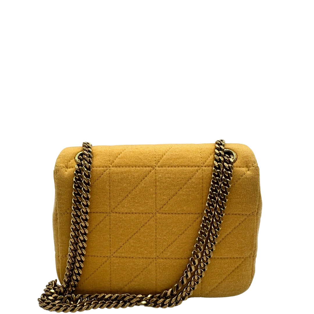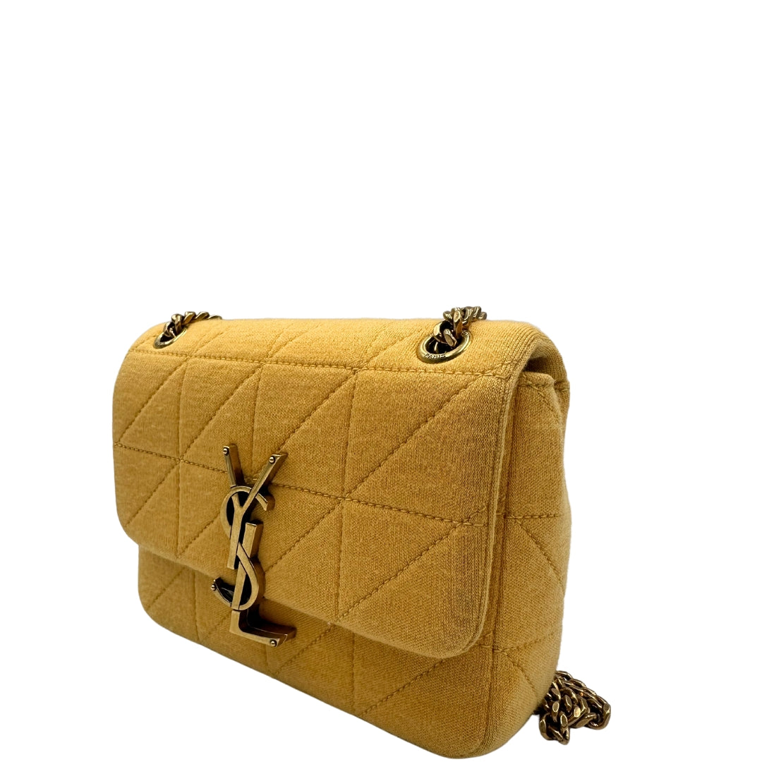 Descrizione: Borsa Saint Laurent Sac Jamie in tessuto giallo con dettagli metallici dorati; tracolla scorrevole in catena. Completa di dustbag.