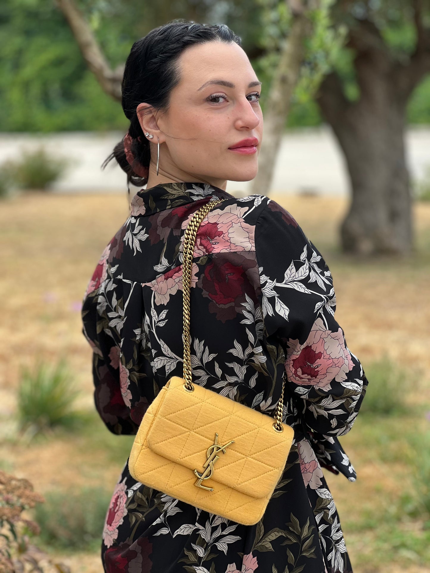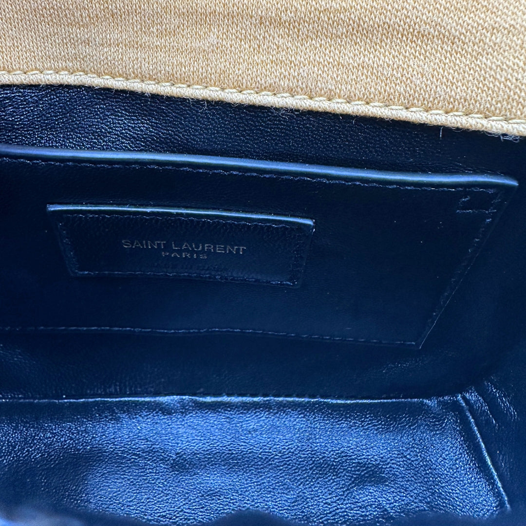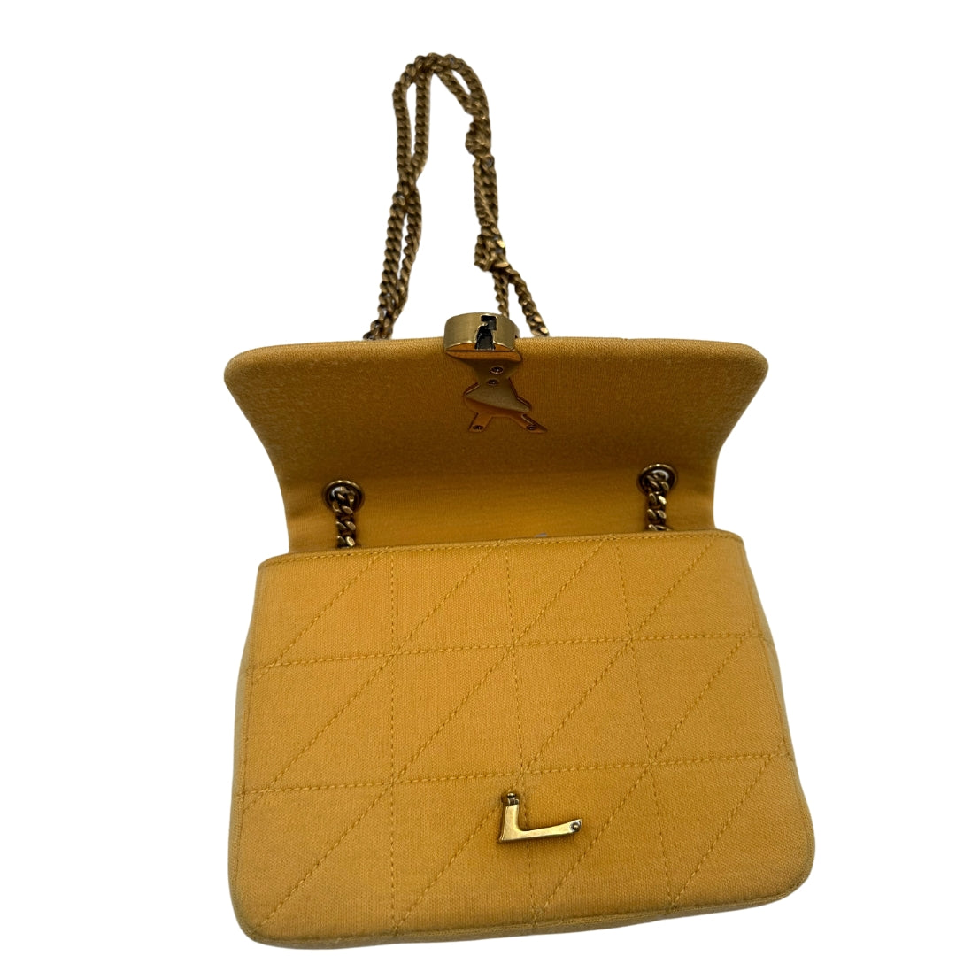 Descrizione: Borsa Saint Laurent Sac Jamie in tessuto giallo con dettagli metallici dorati; tracolla scorrevole in catena. Completa di dustbag.