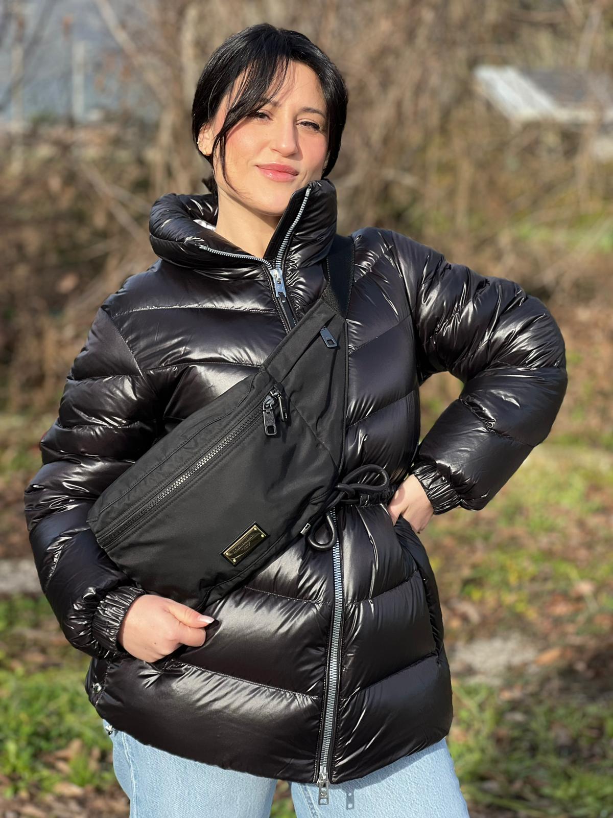 Descrizione: Marsupio D&G in nylon nero rifinito con parti metalliche effetto renio; munita di cinta regolabile con chiusura a gancio.