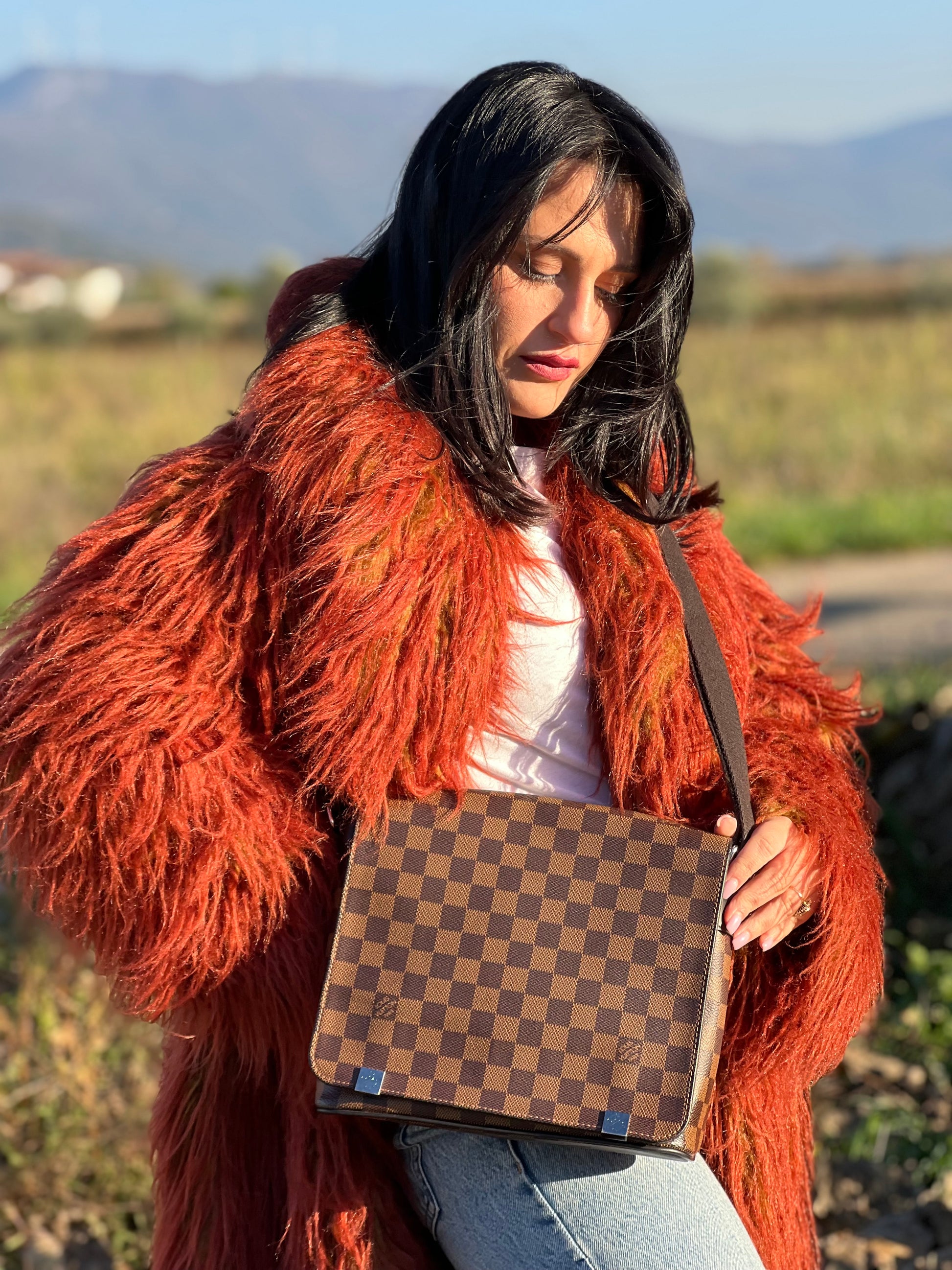 Descrizione: Borsa Louis Vuitton in canvas Damier Ébène marrone con parti metalliche dorate e finiture in pelle testa di moro; munita di una tracolla in tessuto regolabile. Completa di scatola.