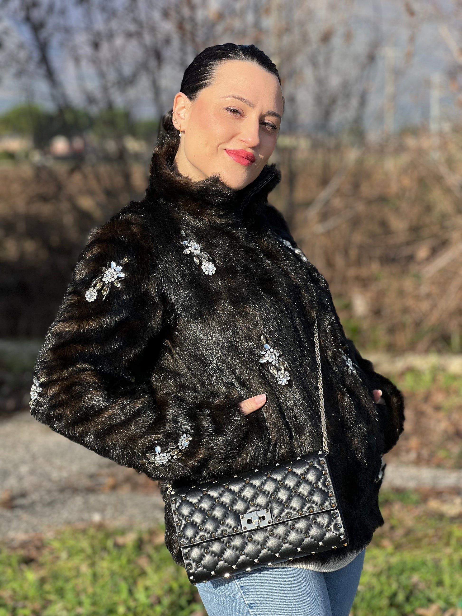 N.B. La parte interna della patta presenta piccole imperfezioni dovute al contatto con le borchie; Le foto mostrano fedelmente le condizioni dell'articolo.
