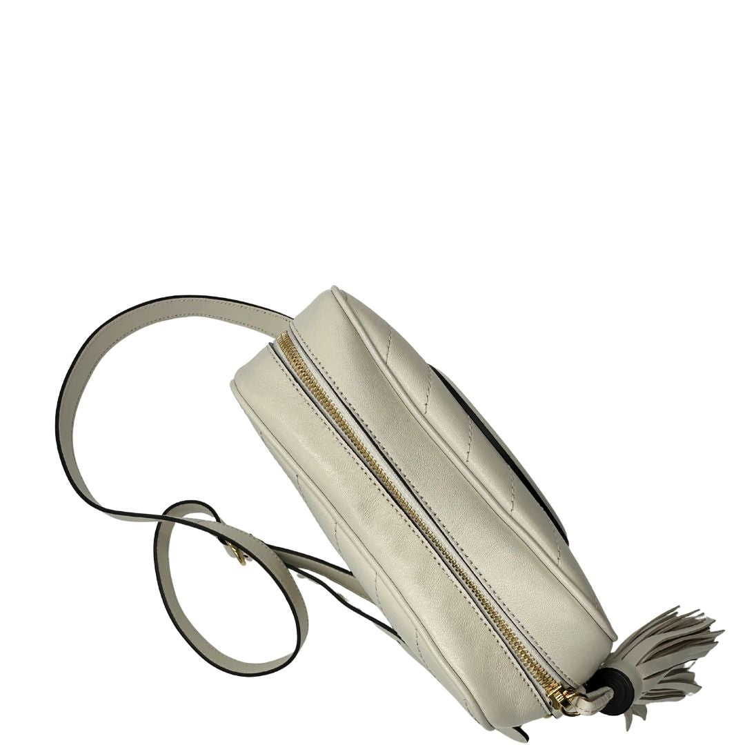 Descrizione: Borsa Gucci in pelle color bianco gesso con parti metalliche dorate; impreziosita da nappa decorativa e munita di una tracolla regolabile. Completa di corredo