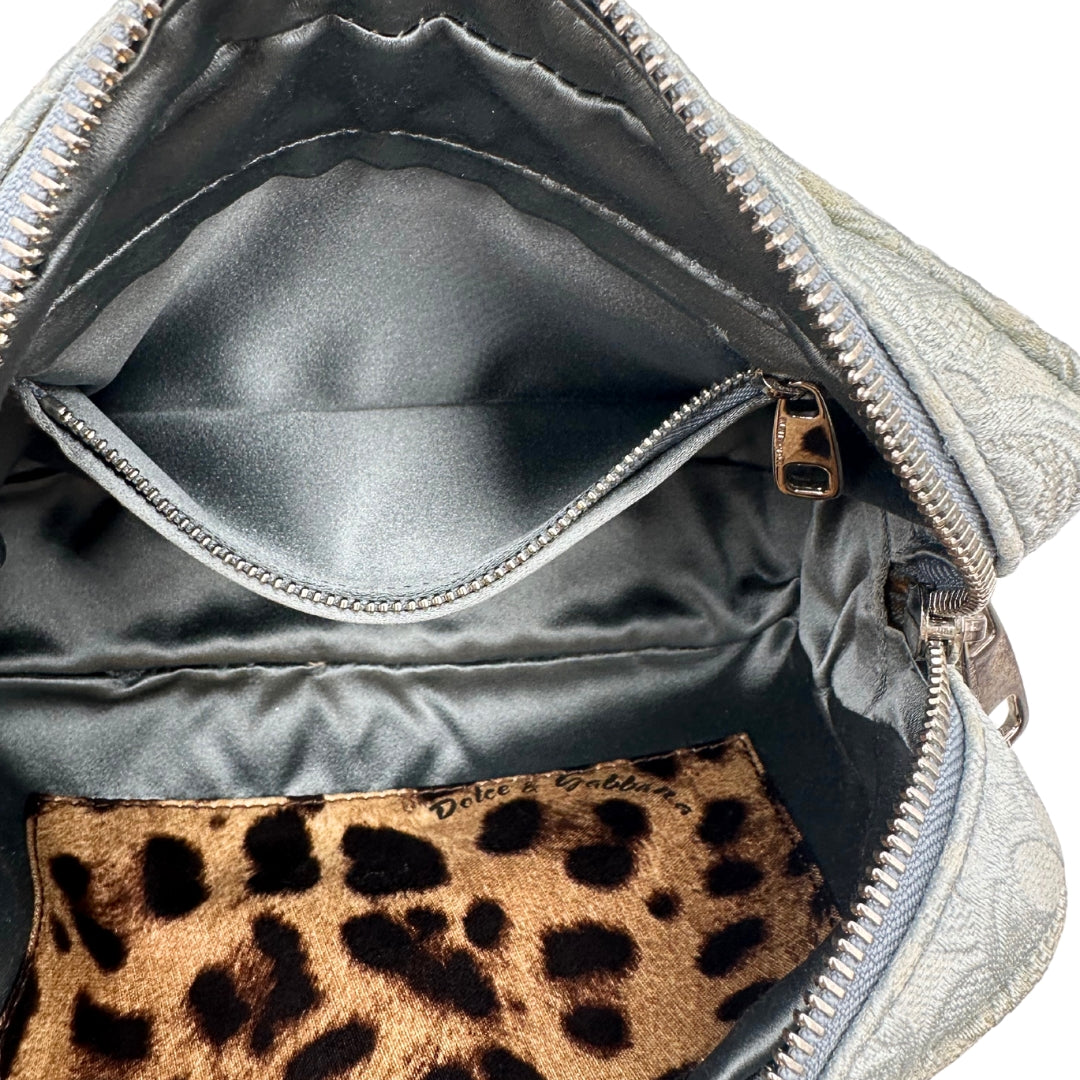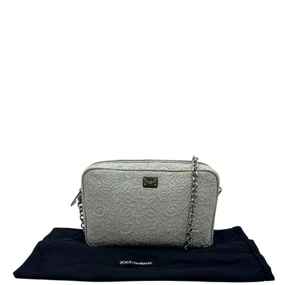 Descrizione: Borsa a tracolla Dolce & Gabbana in tessuto color carta da zucchero rifinita con ricami floreali; munita di tracolla. Completa di dustbag.
