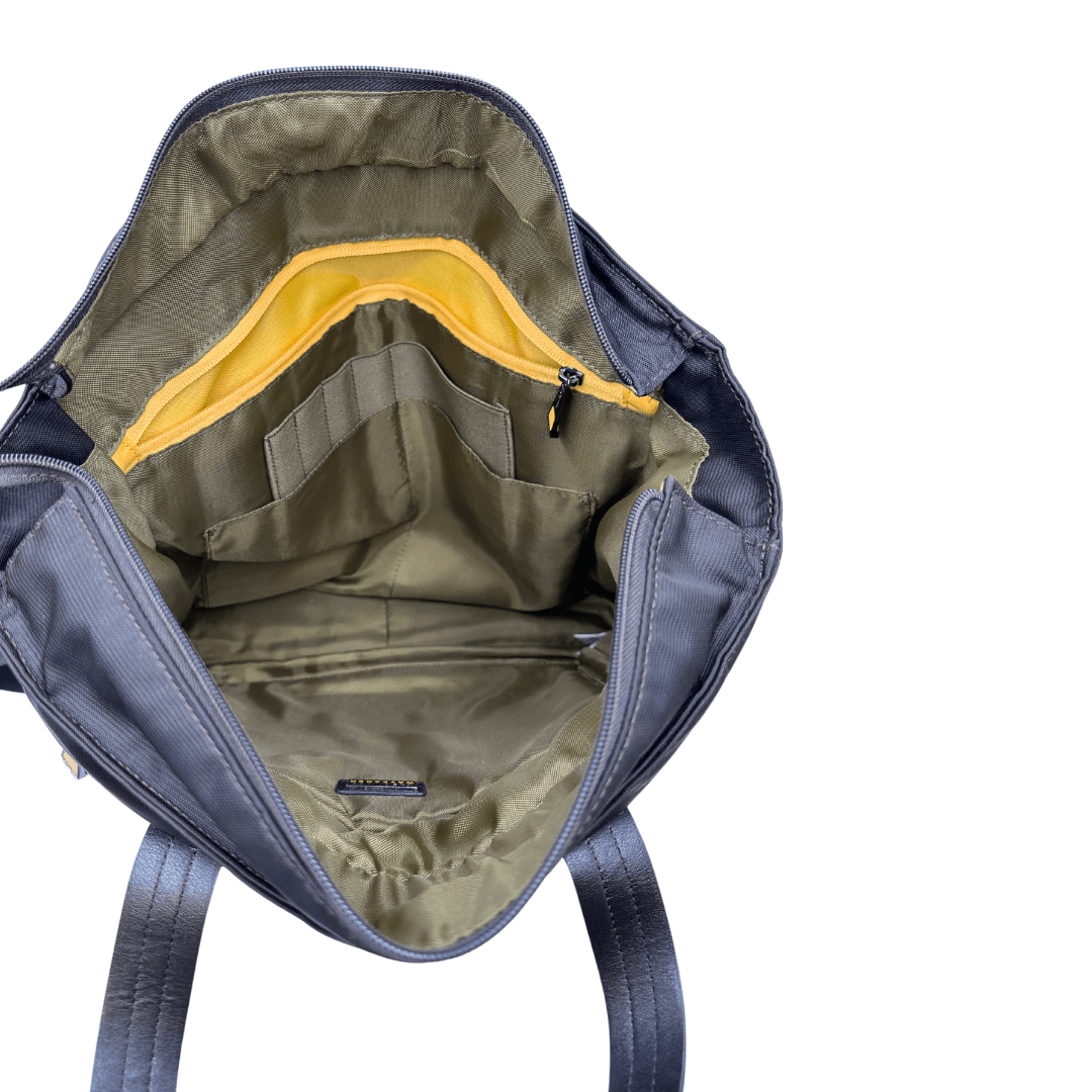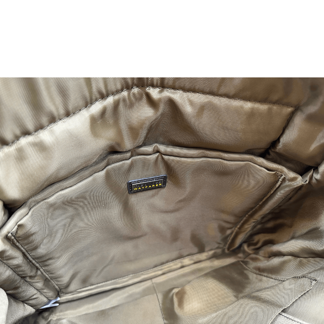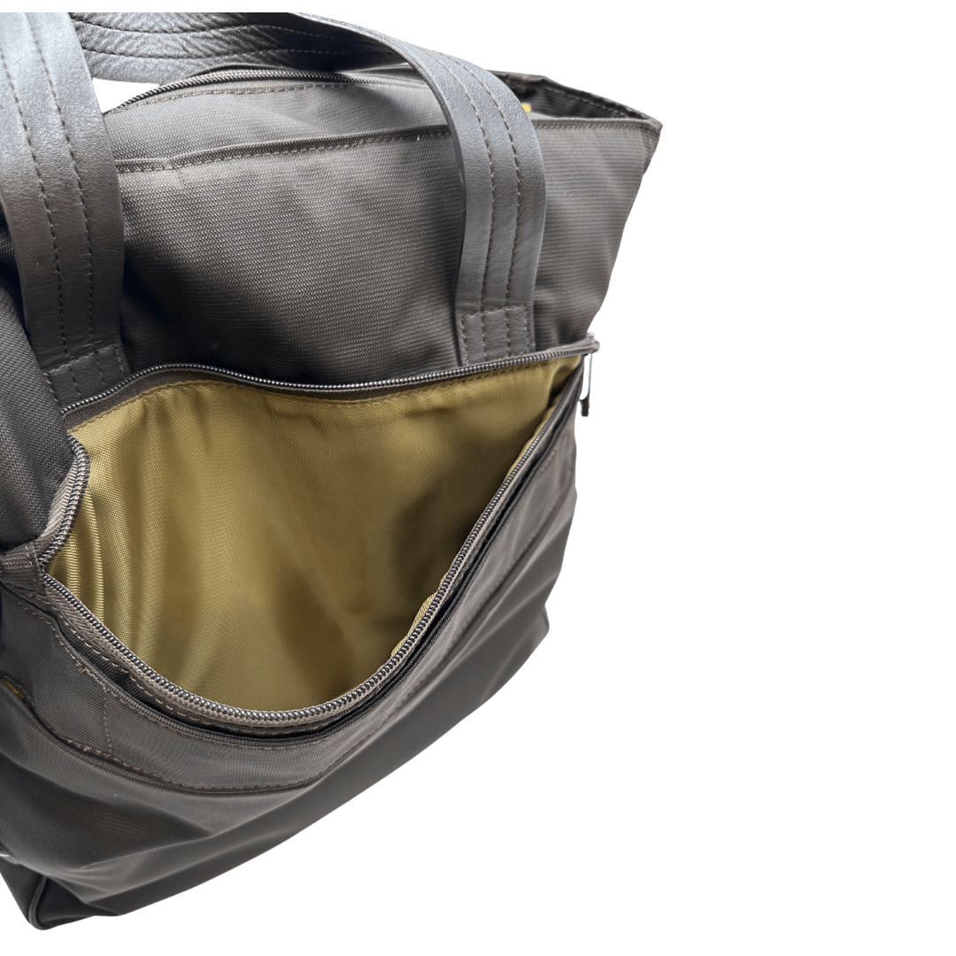 Descrizione: Cartella The Bridge in tessuto testa di moro con finiture in pelle tono su tono e parti metalliche argentate. Doppi manici in pelle e tracolla in tessuto regolabile e amovibile.