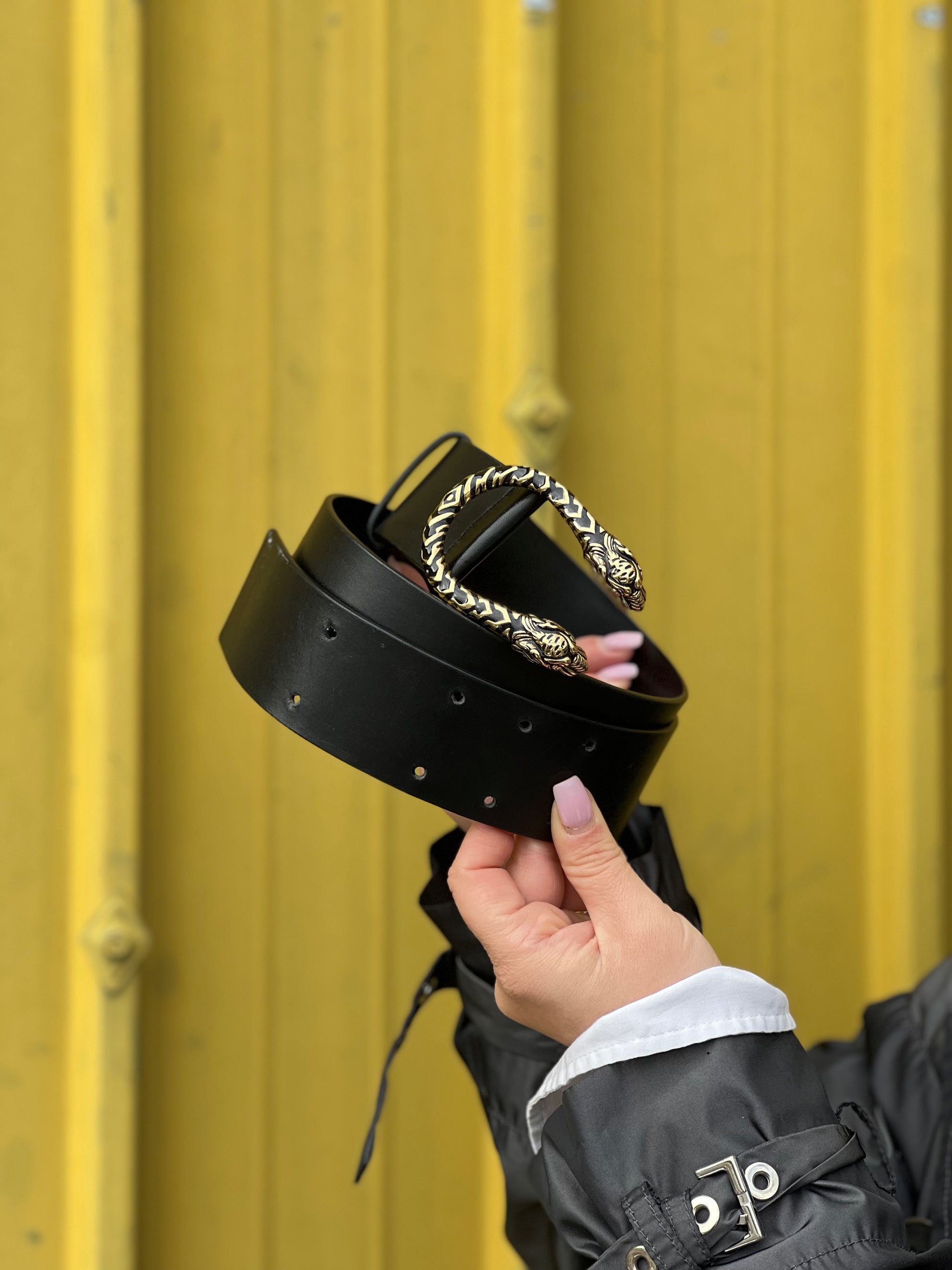 Cintura Gucci in pelle nera con fibbia Dionysus.