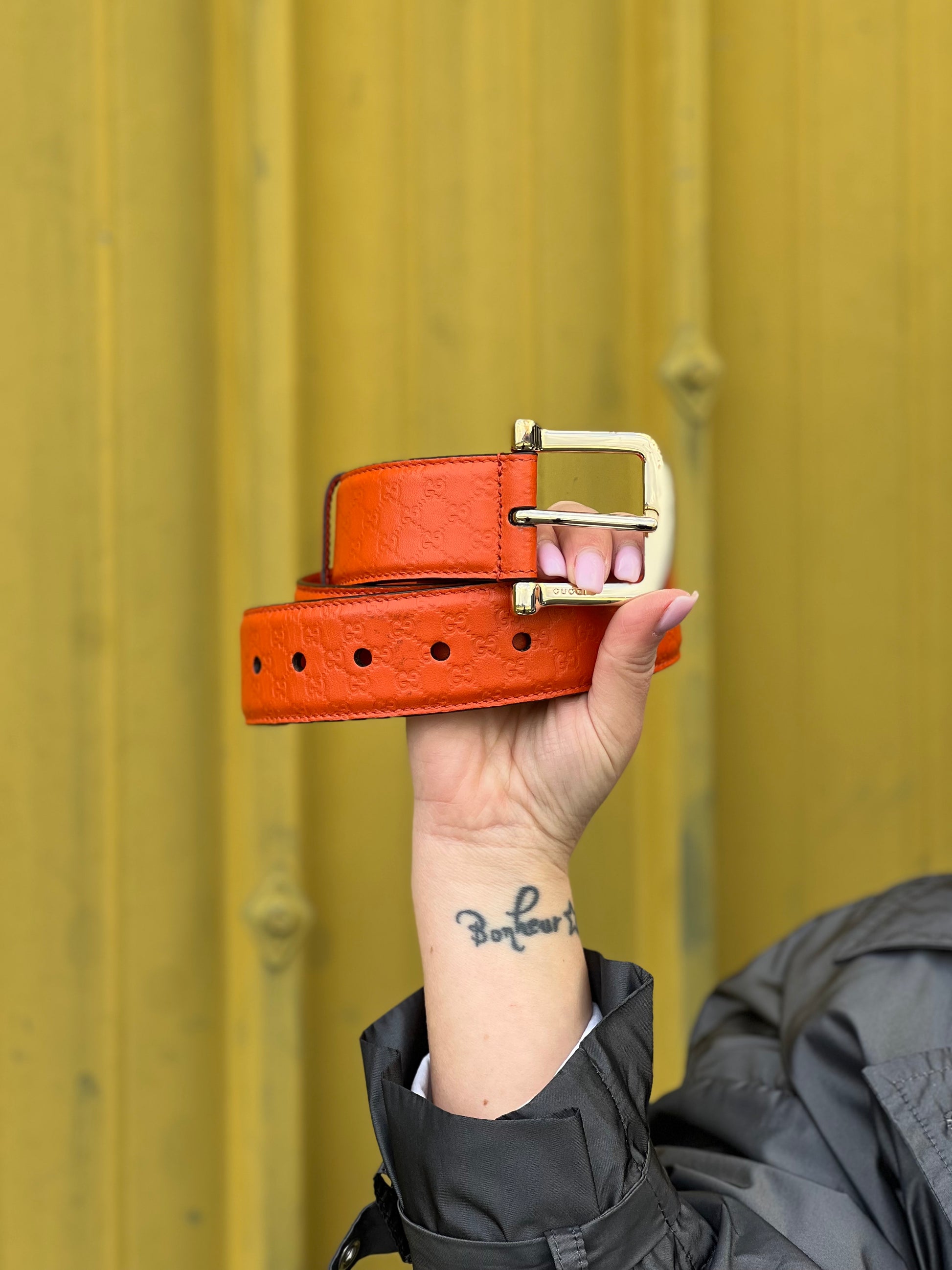 Cinta Gucci in pelle arancione GG.