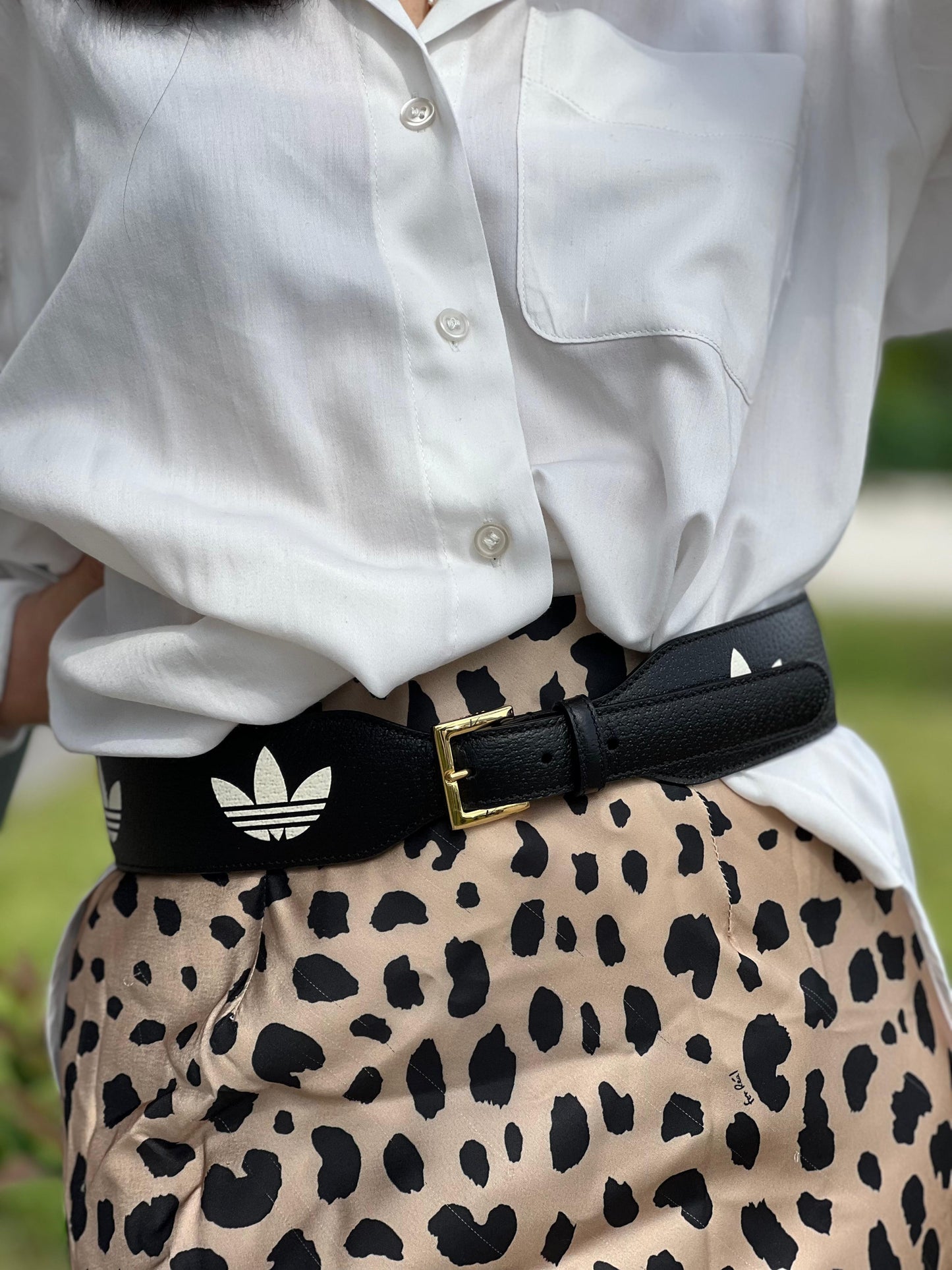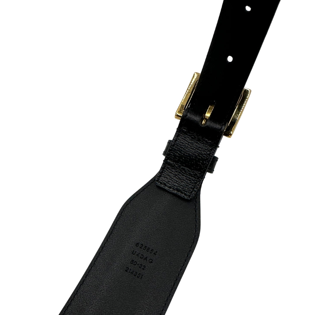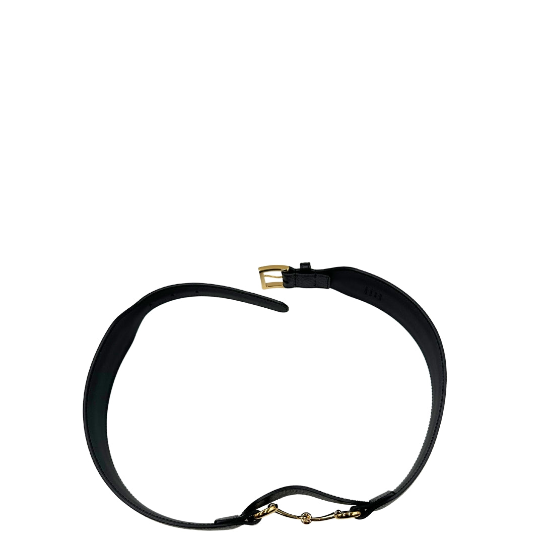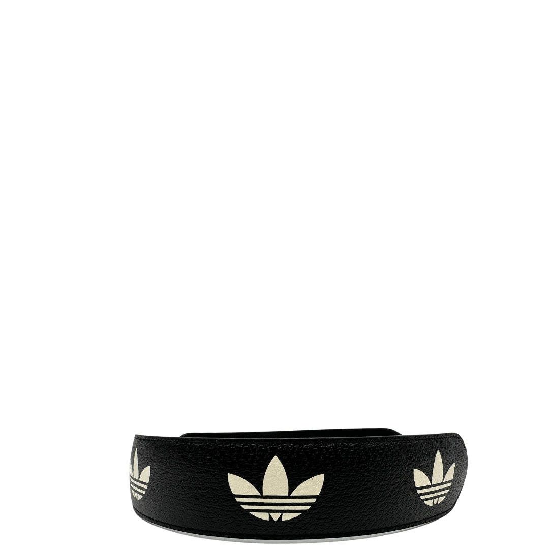 Descrizione: Cintura Gucci x Adidas realizzata in pelle nera, impreziosita da stampa del logo Adidas in bianco e dettaglio Horsebit in metallo dorato. Completa di dustbag