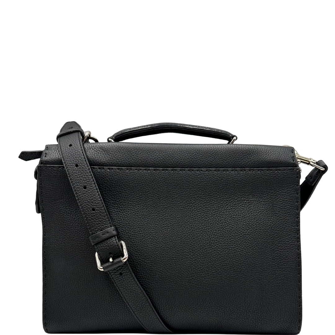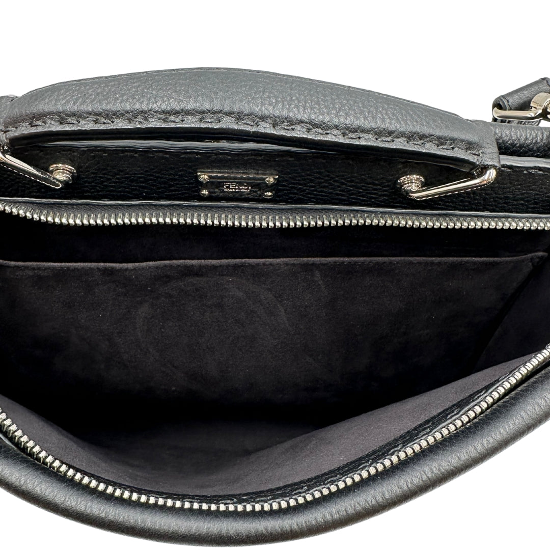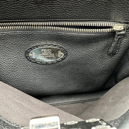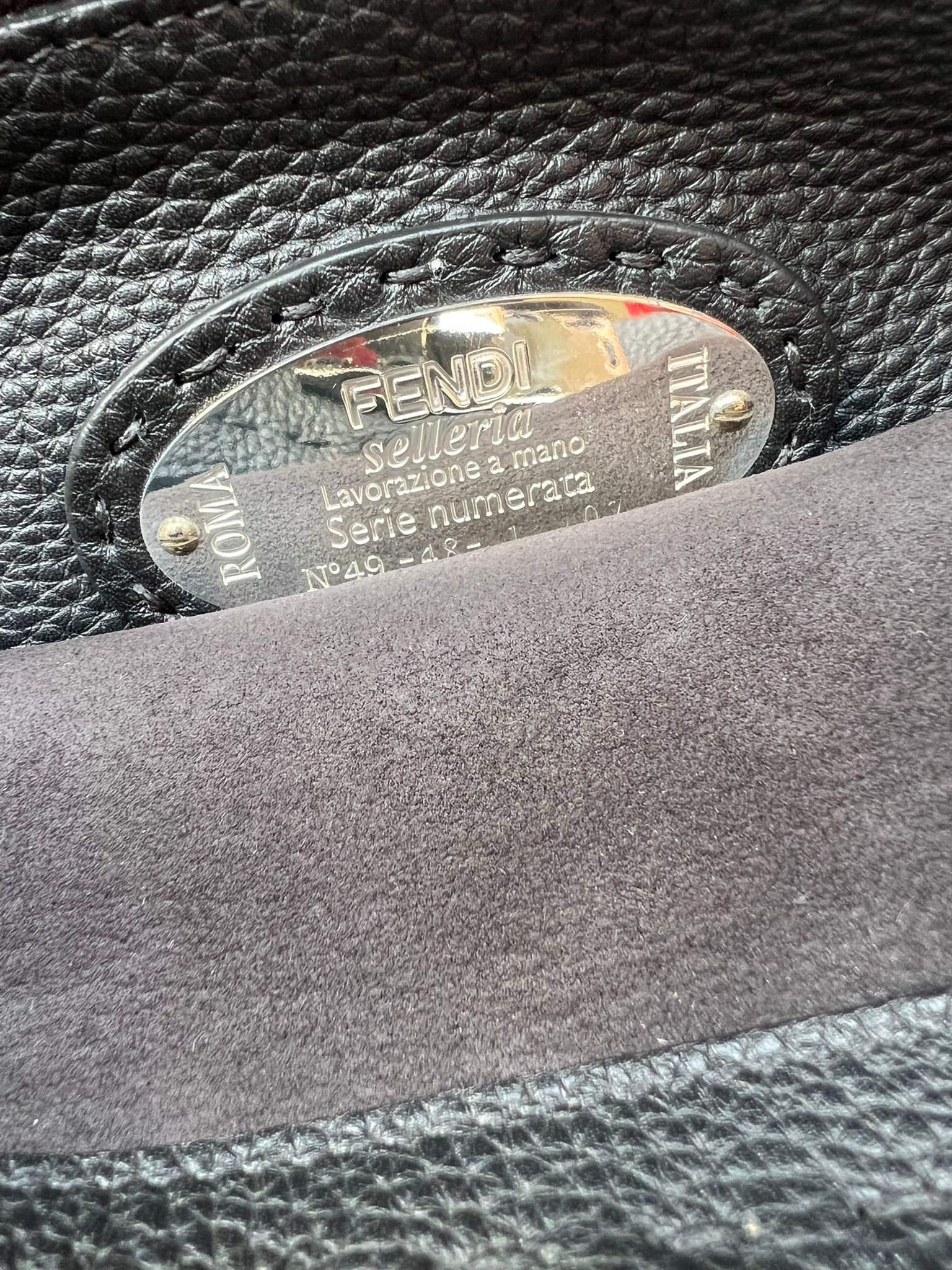 Descrizione: Borsa Fendi in cuoio romano nero rifinita con metalleria argentata; Munita di un manico e una tracolla regolabile e amovibile. Completa di dustbag.