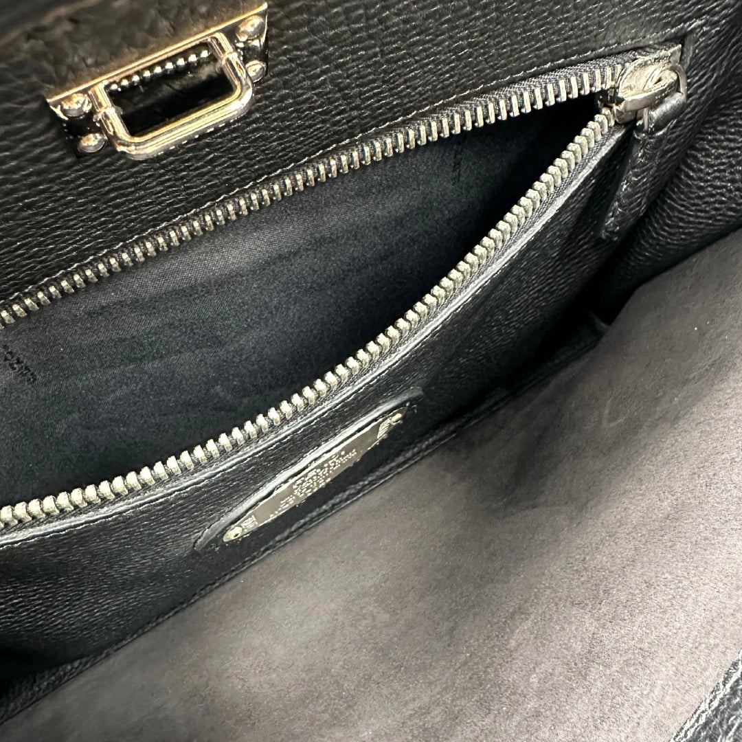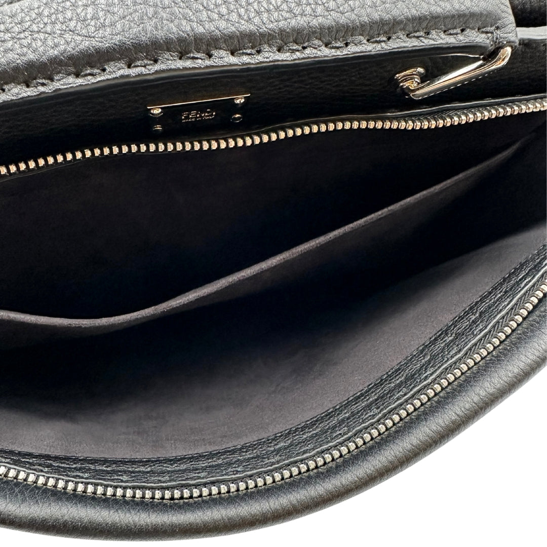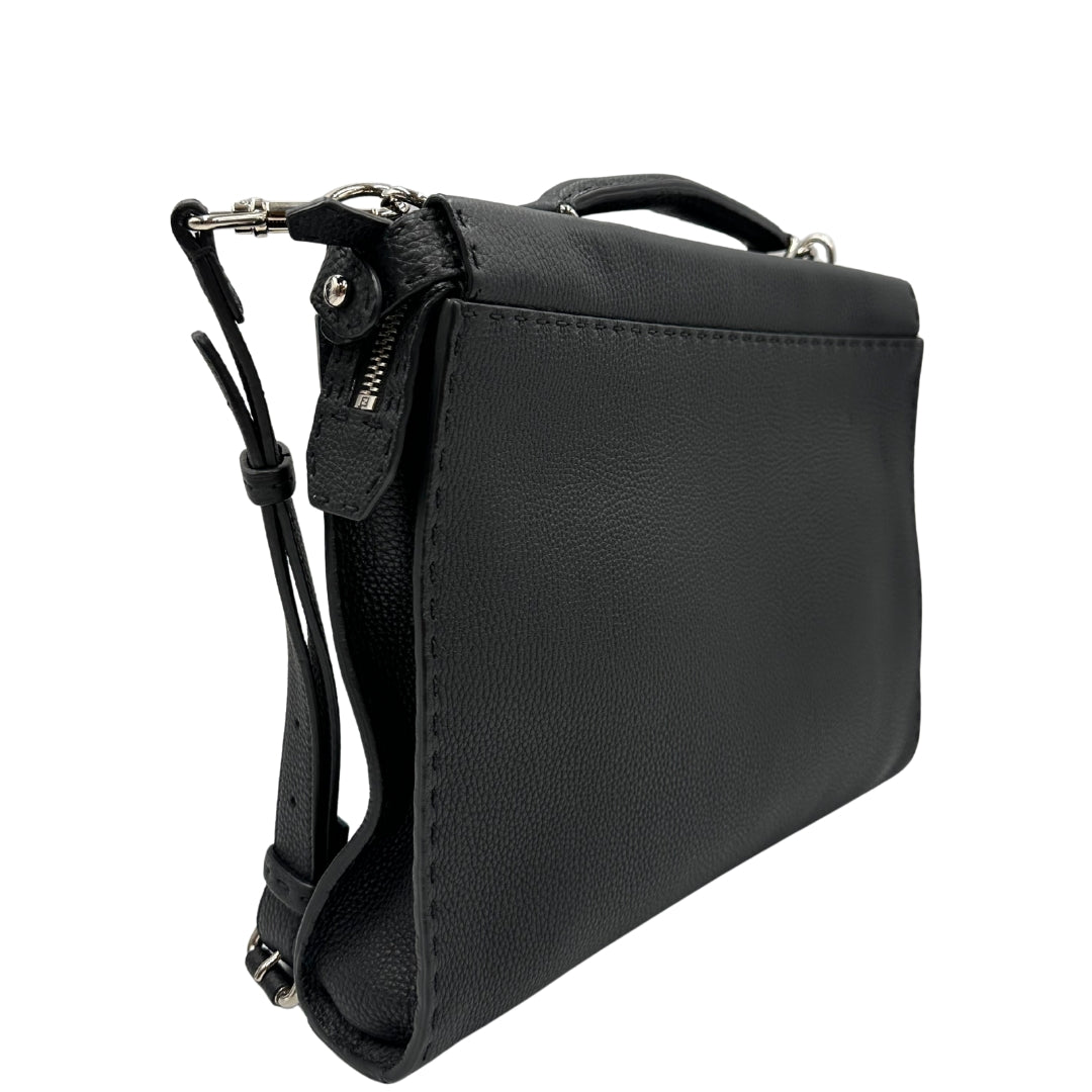 Descrizione: Borsa Fendi in cuoio romano nero rifinita con metalleria argentata; Munita di un manico e una tracolla regolabile e amovibile. Completa di dustbag.