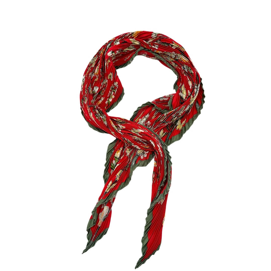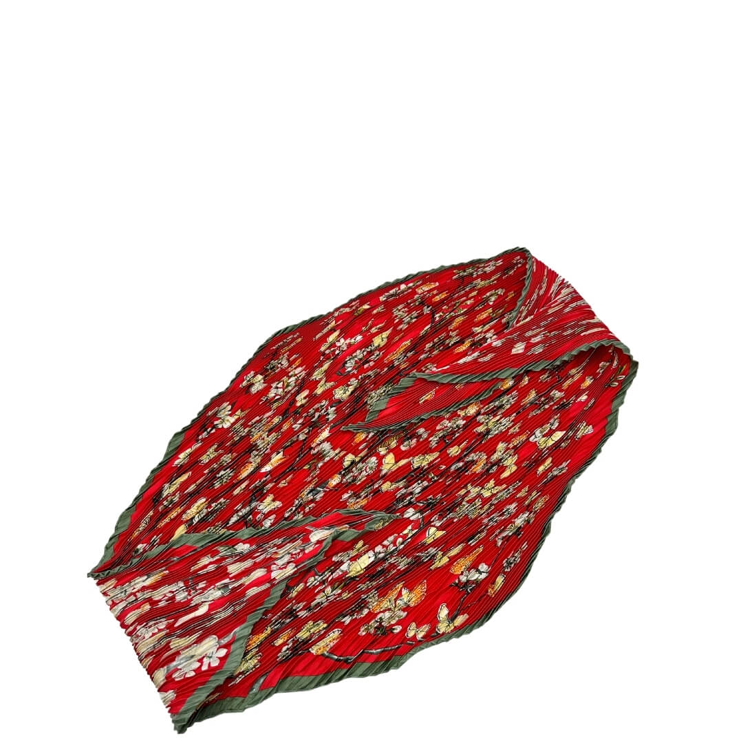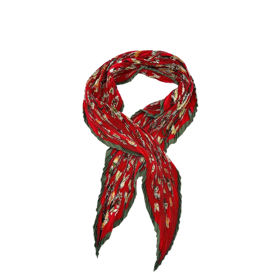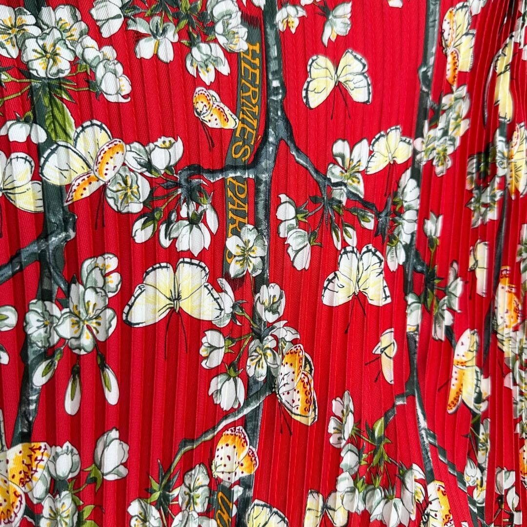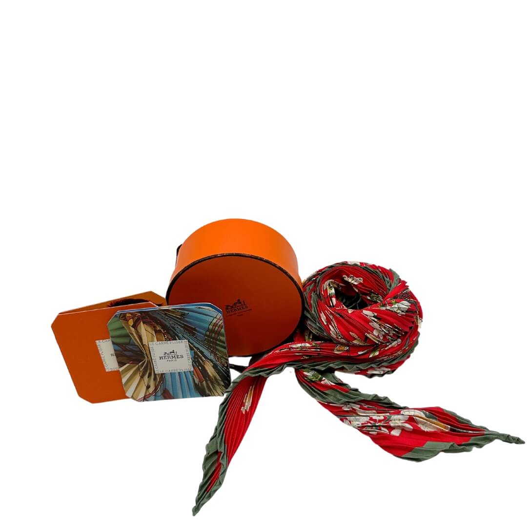 Descrizione: Foulard Hermès in seta rossa con fantasia floreale. Completo di corredo.