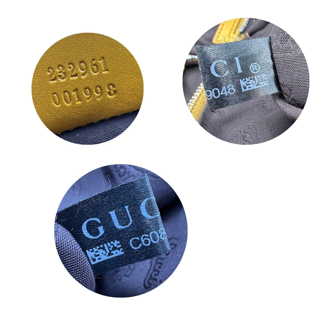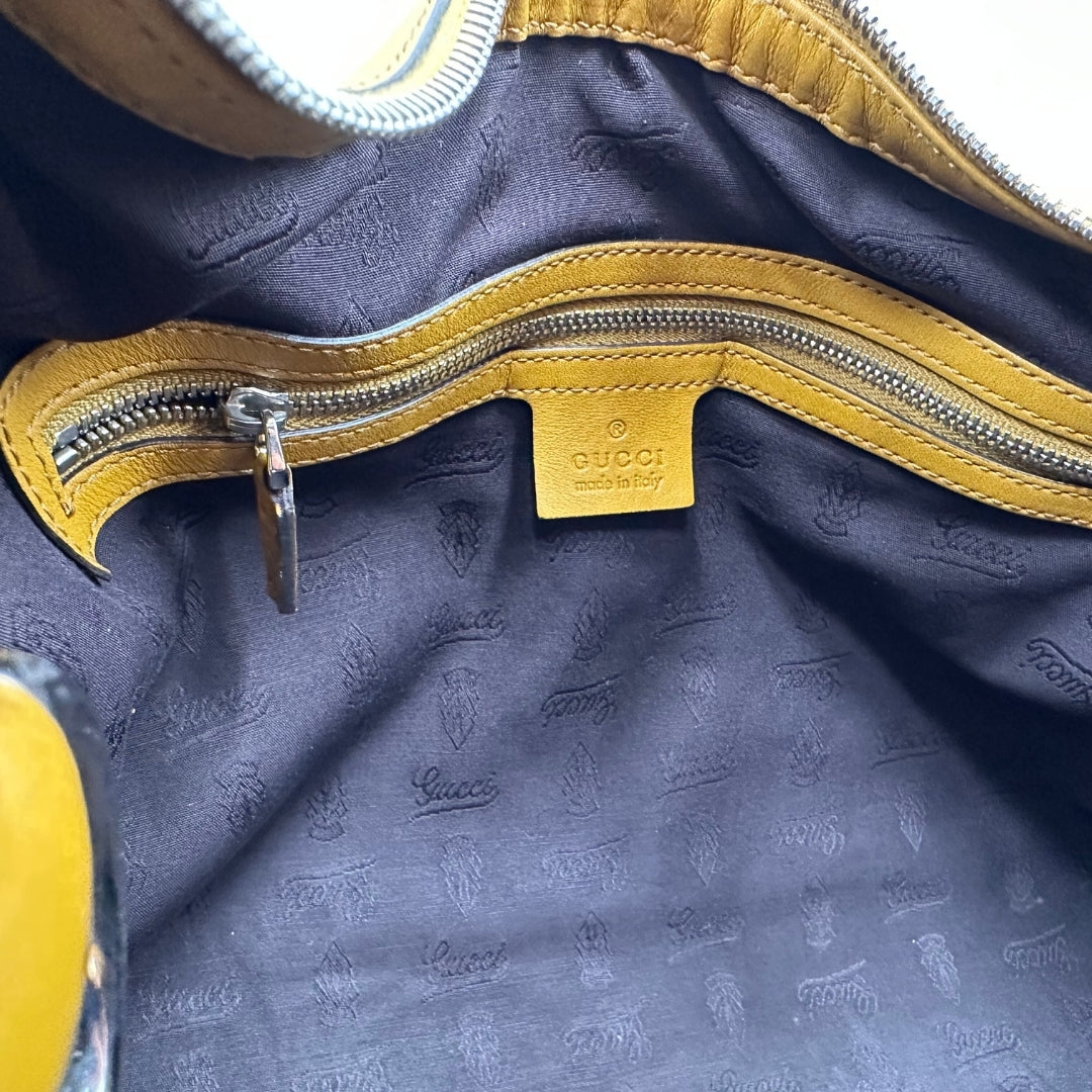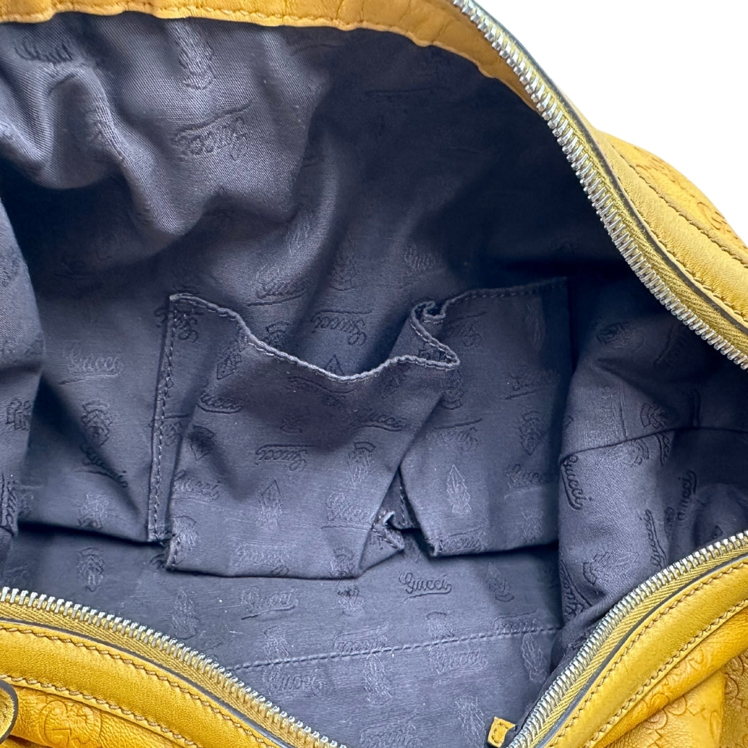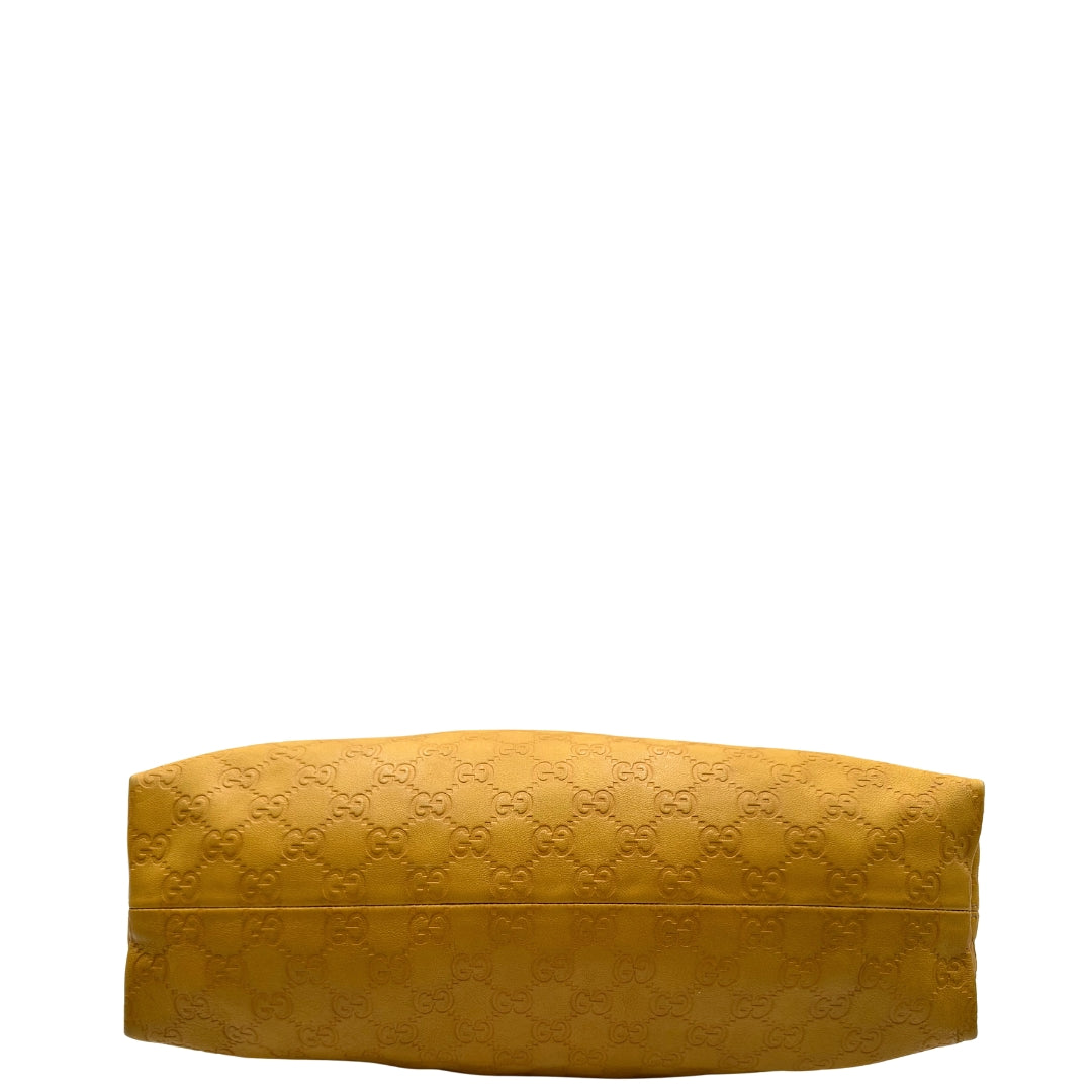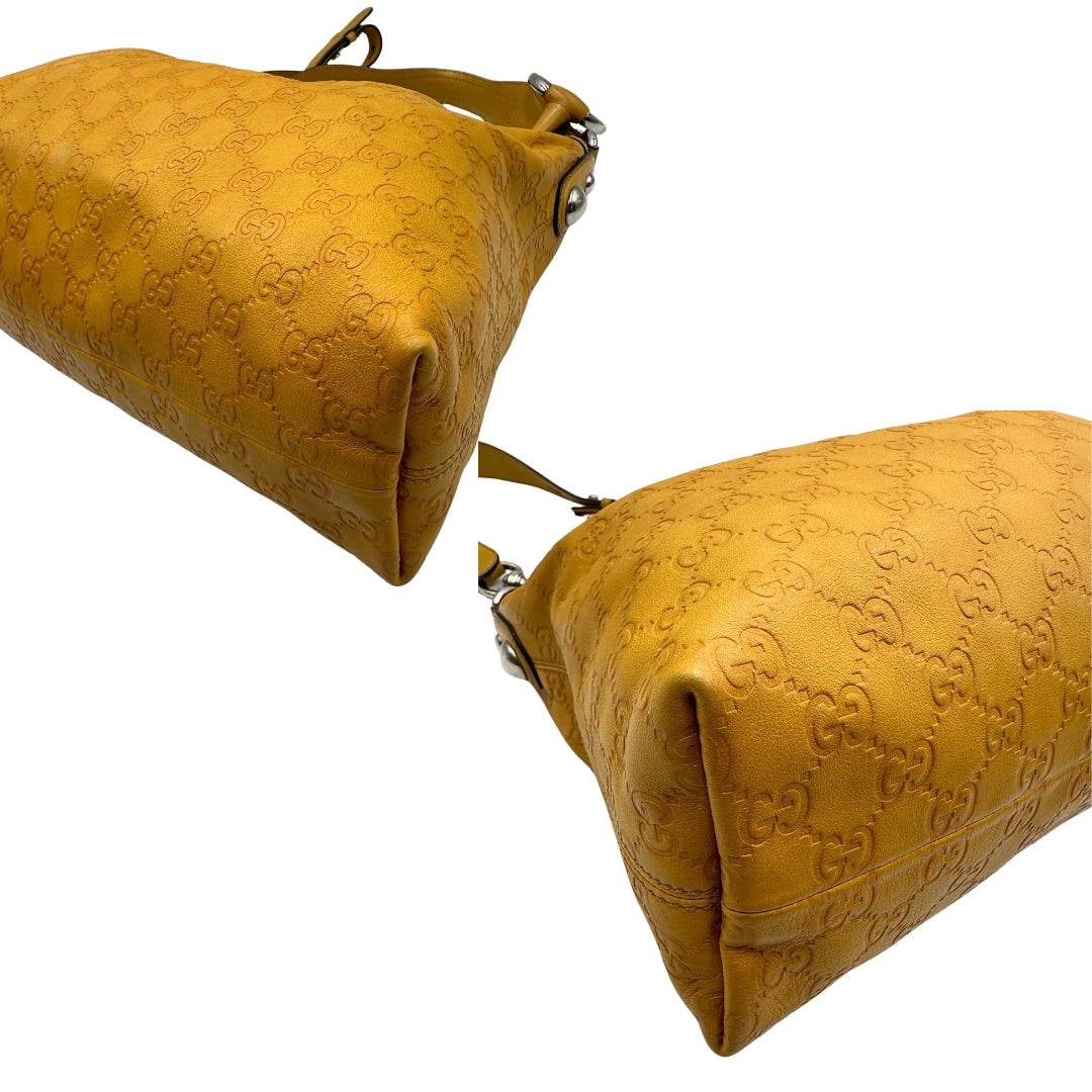 Descrizione: Borsa Hobo Gucci in pelle giallo senape con trama GG e parti metalliche argentate.