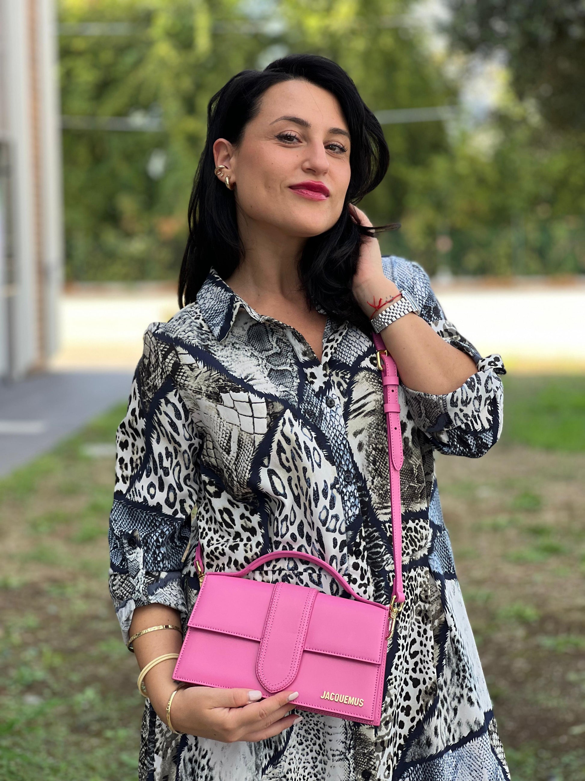 Descrizione: Le Grand Bambino Jacquemus in pelle neon pink con parti metalliche dorate; da portare a mano o a tracolla. Completa di dustbag