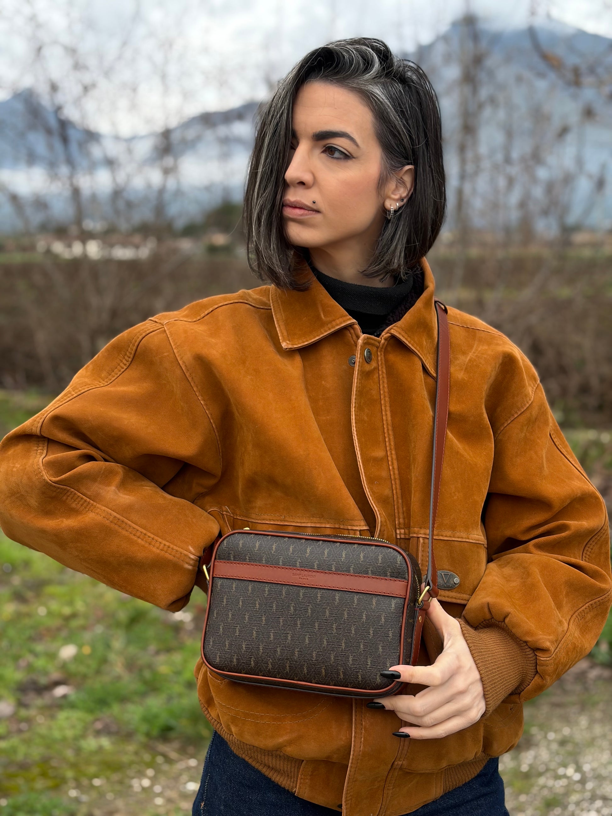Descrizione: Borsa Saint Laurent in canvas marrone con mini loghi Cassandre, parti metalliche dorate e finiture in pelle color cognac; munita di una tracolla leggermente regolabile. Completa di dustbag.