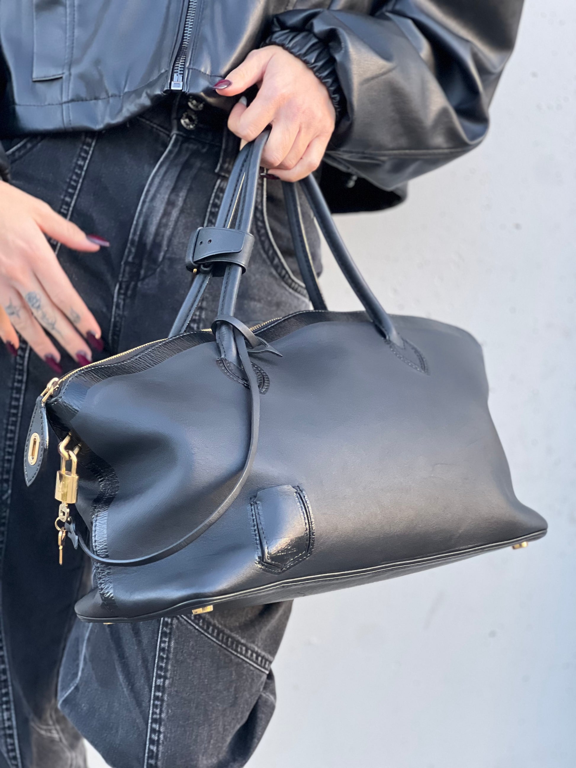 Descrizione: Borsa Lockit East West Louis Vuitton in pelle nera con parti metalliche dorate. Completa di dustbag