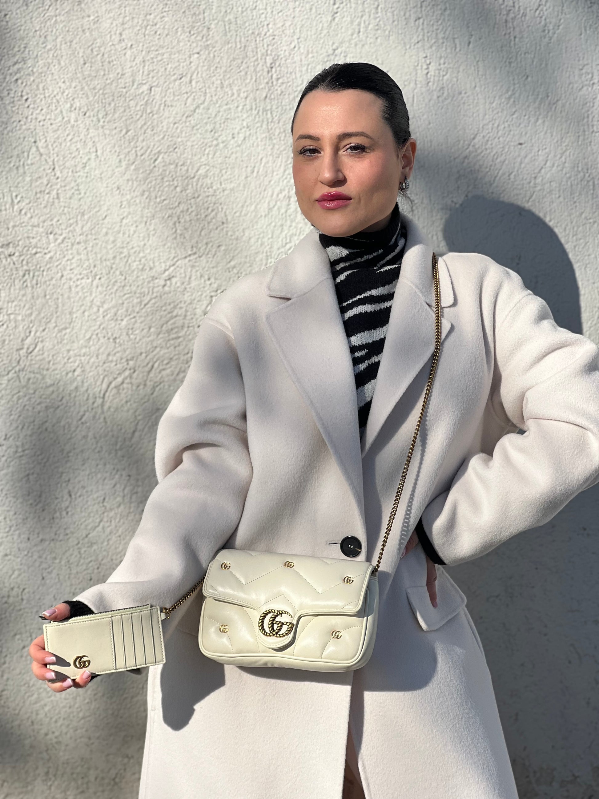 Descrizione: Borsa Gucci GG Marmont in pelle matelassé color bianco latte, caratterizzata dalla classica trapuntatura a chevron e dagli iconici dettagli GG in metallo dorato. Dotata di tracolla in catena amovibile. Presente un accessorio portamonete e carte amovibile. Completa di dustbag.