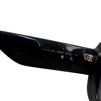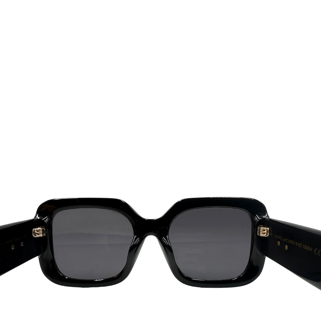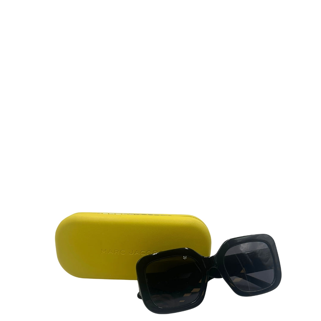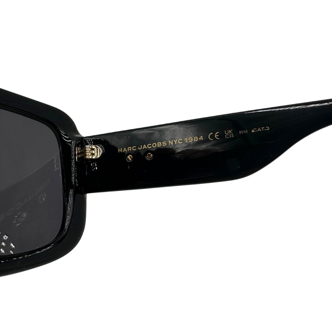 Descrizione: Occhiali da sole Marc Jacobs in acetato nero e parti metalliche dorate. Complete di custodia.