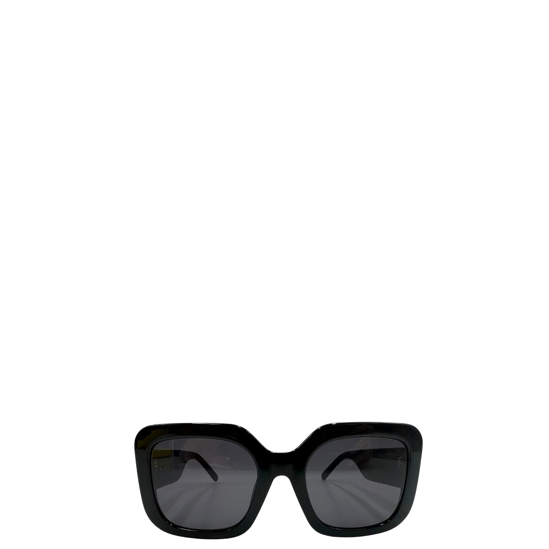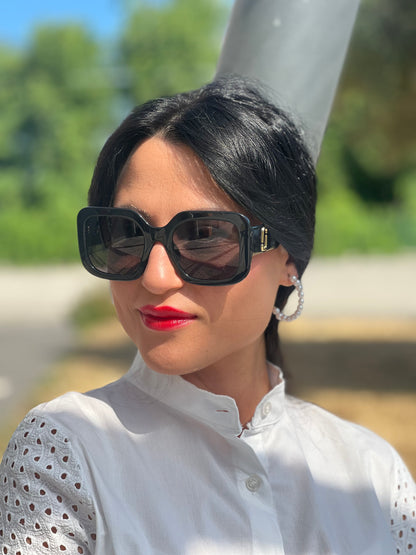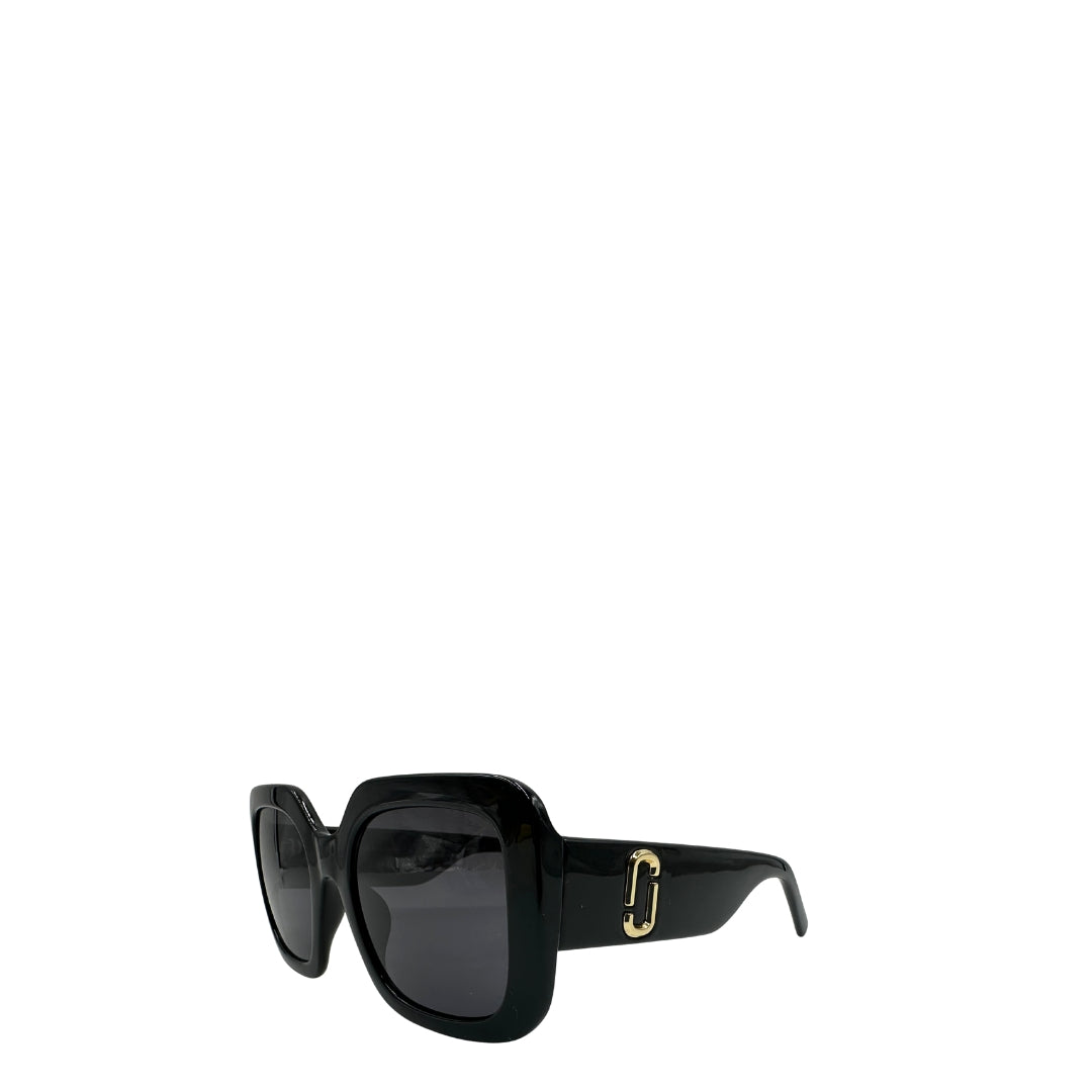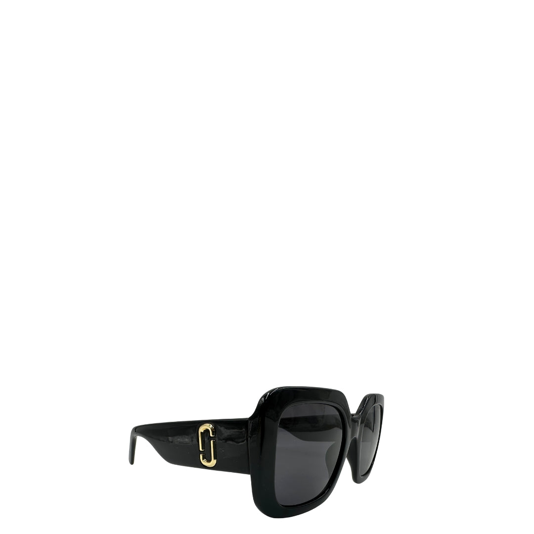 Descrizione: Occhiali da sole Marc Jacobs in acetato nero e parti metalliche dorate. Complete di custodia.