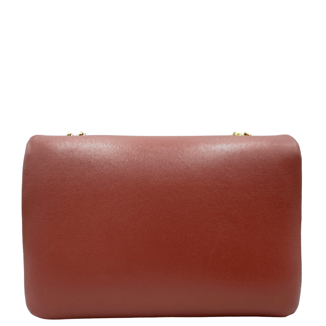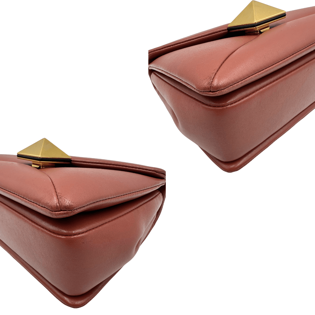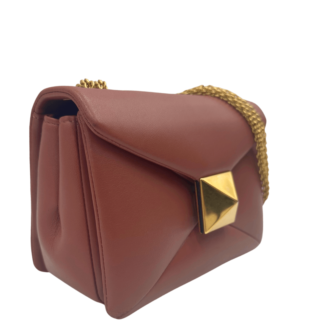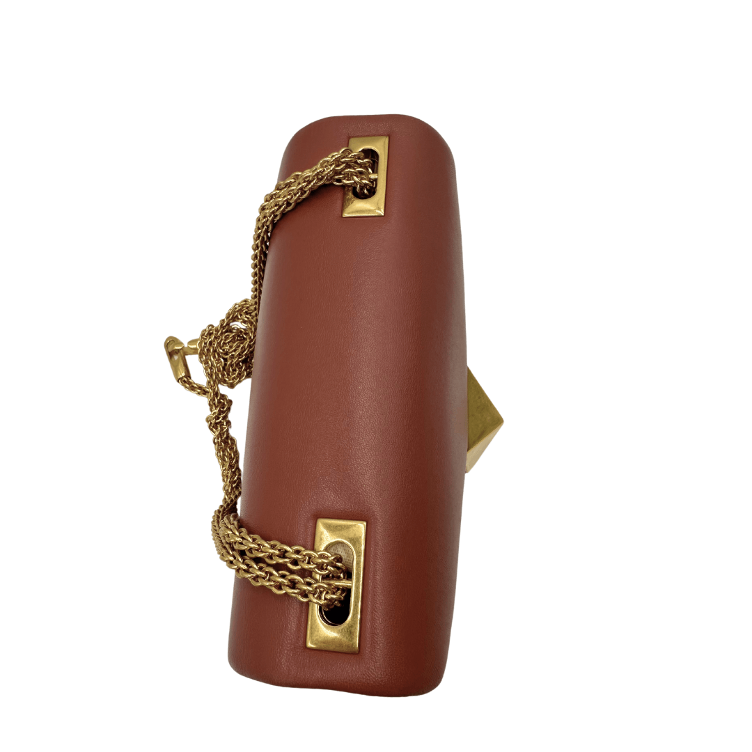 Descrizione: Borsa One Stud Valentino Garavani in pelle color marsala con tracolla in catena scorrevole e iconica chiusura con maxi borchia piramidale. Completa di dustbag.