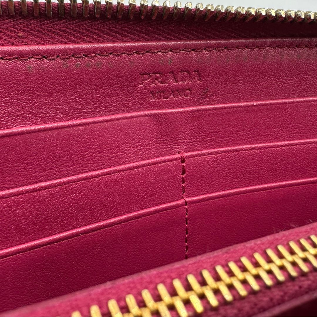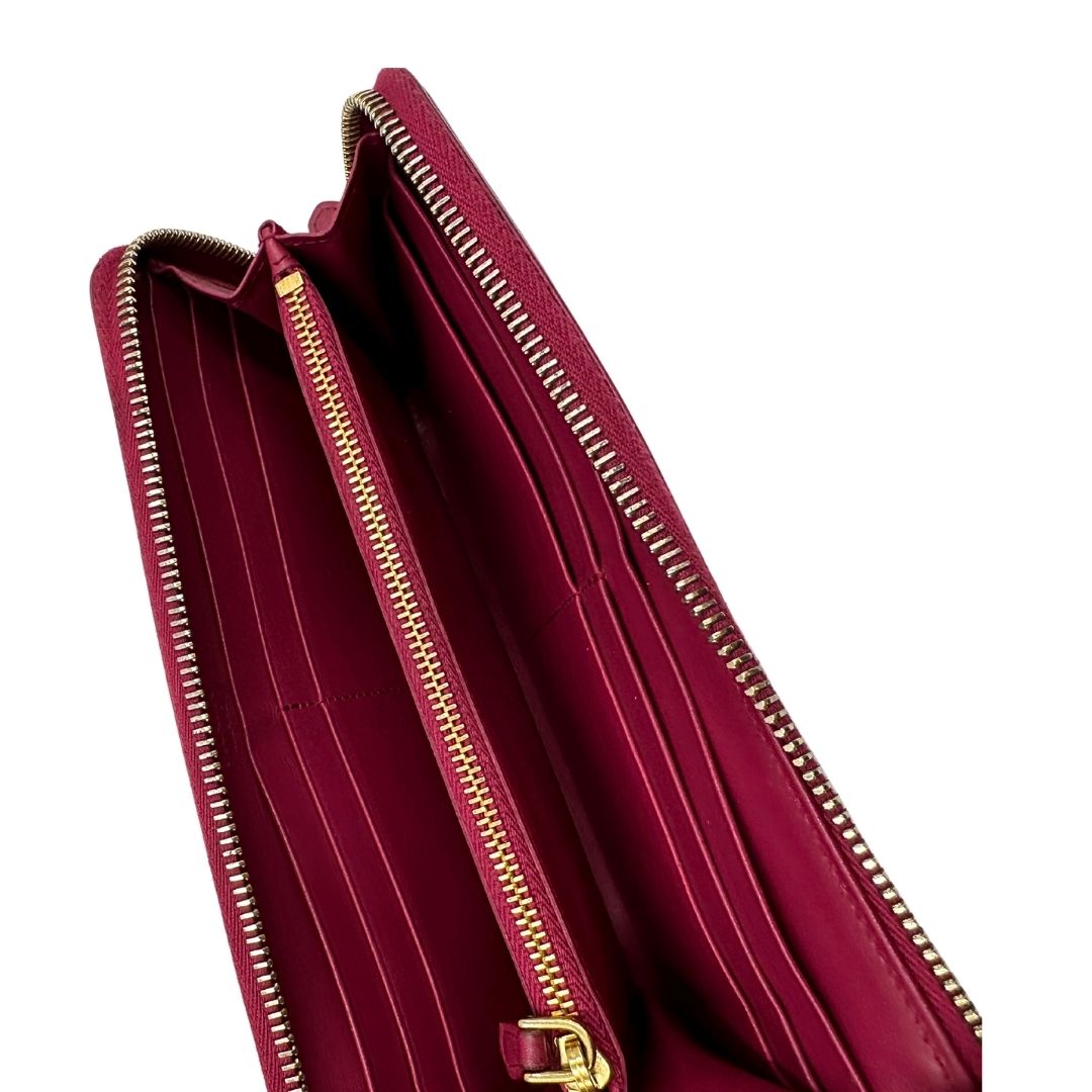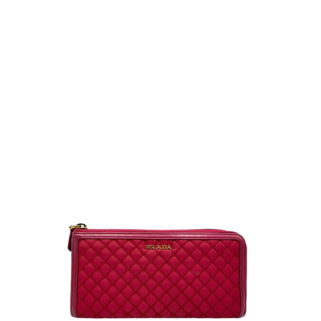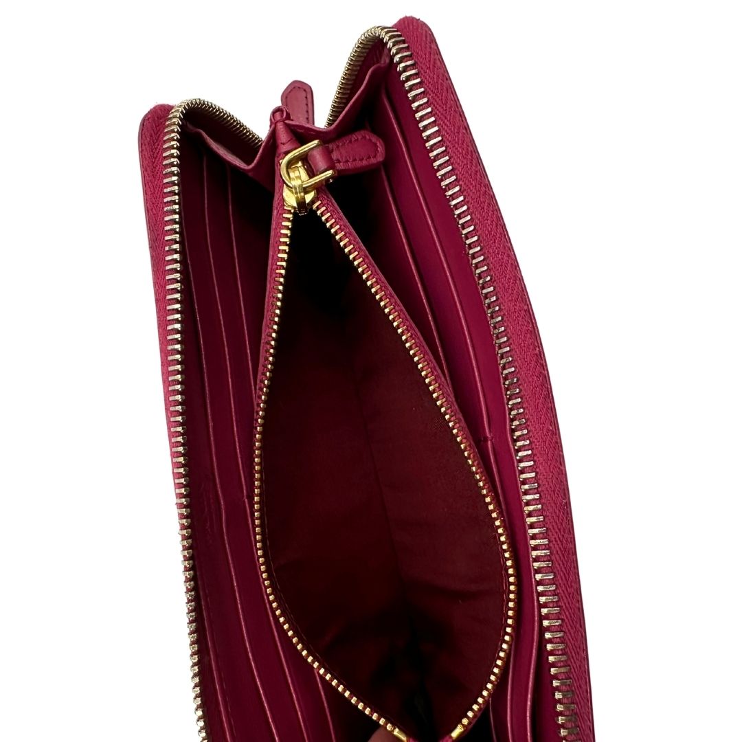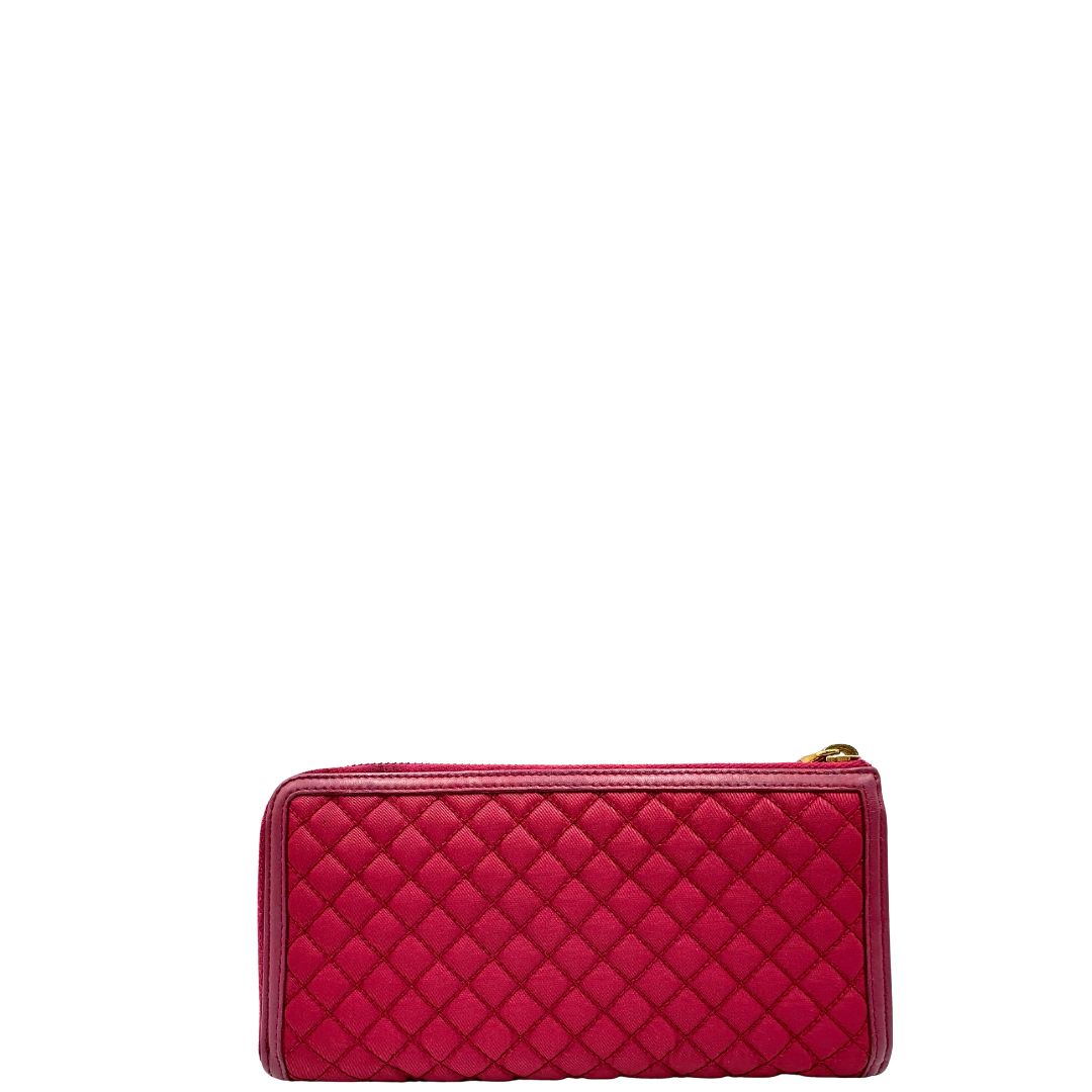 Descrizione: Portafoglio Prada in nylon trapuntato color amaranto con parti metalliche dorate e finiture in pelle tono su tono.