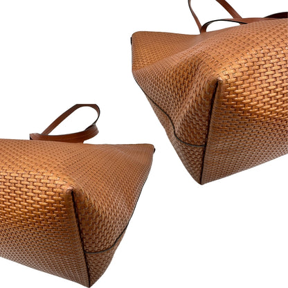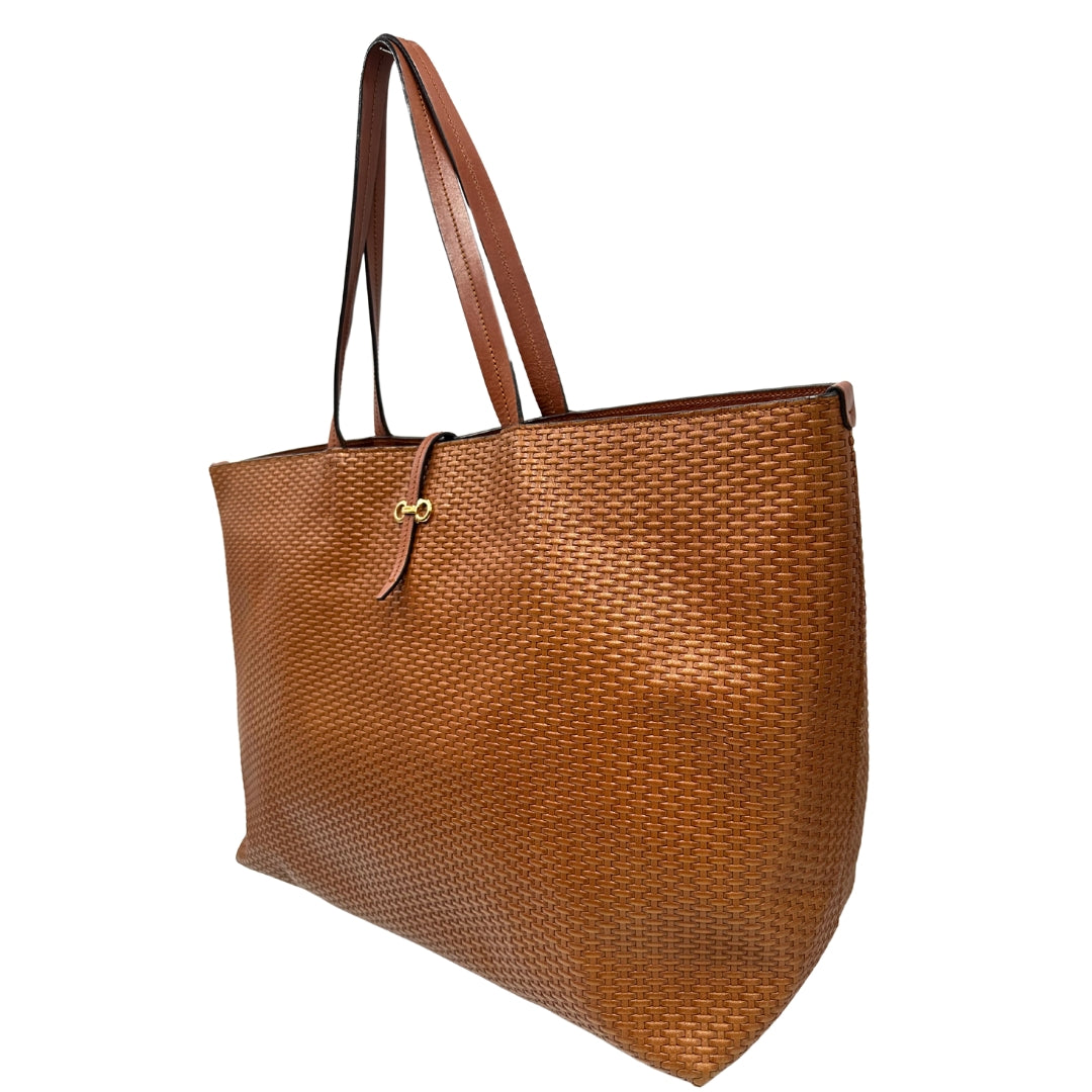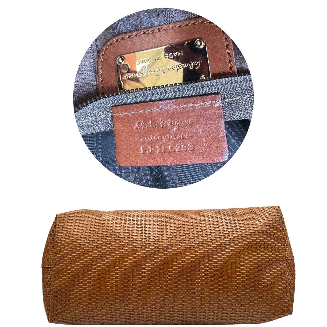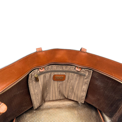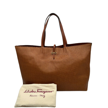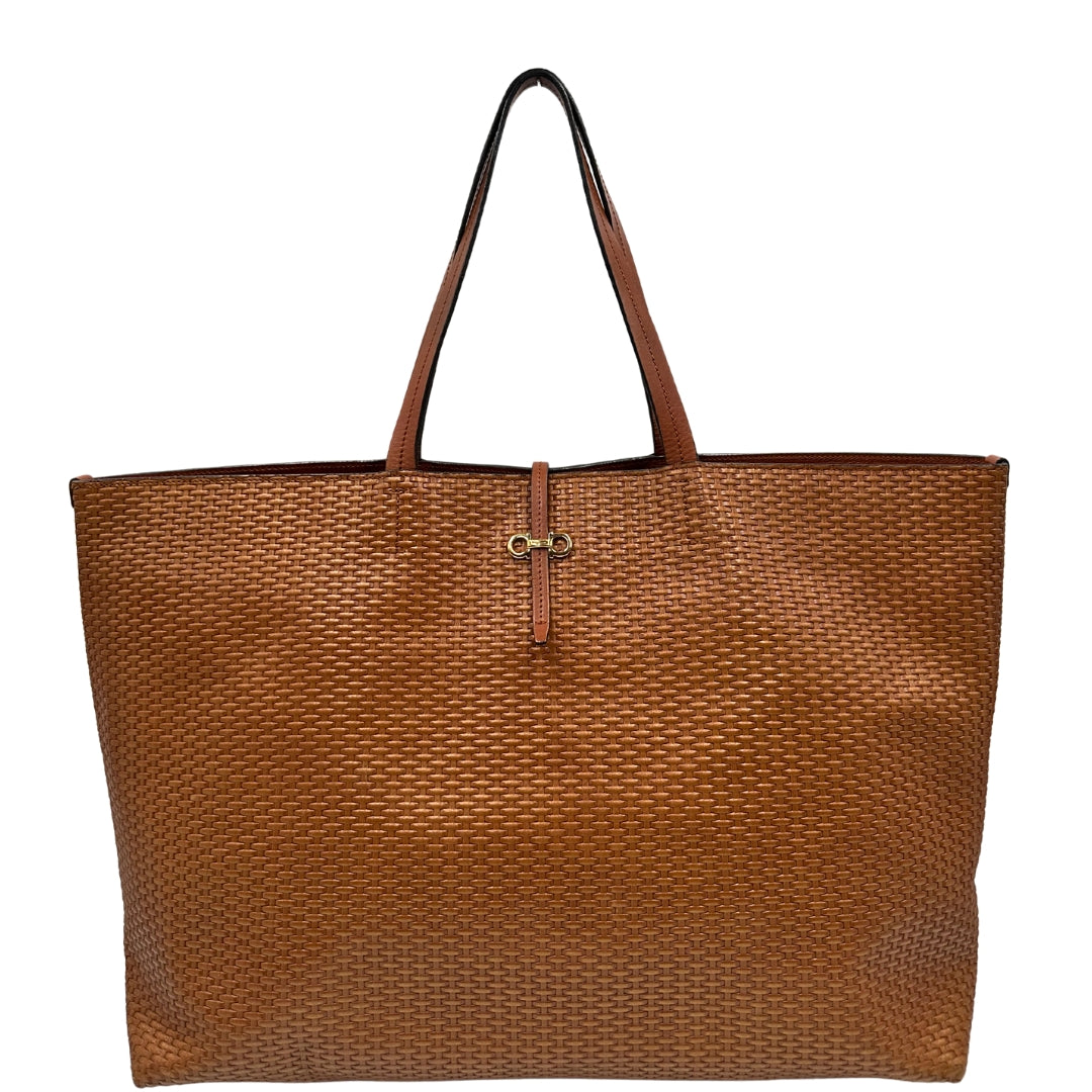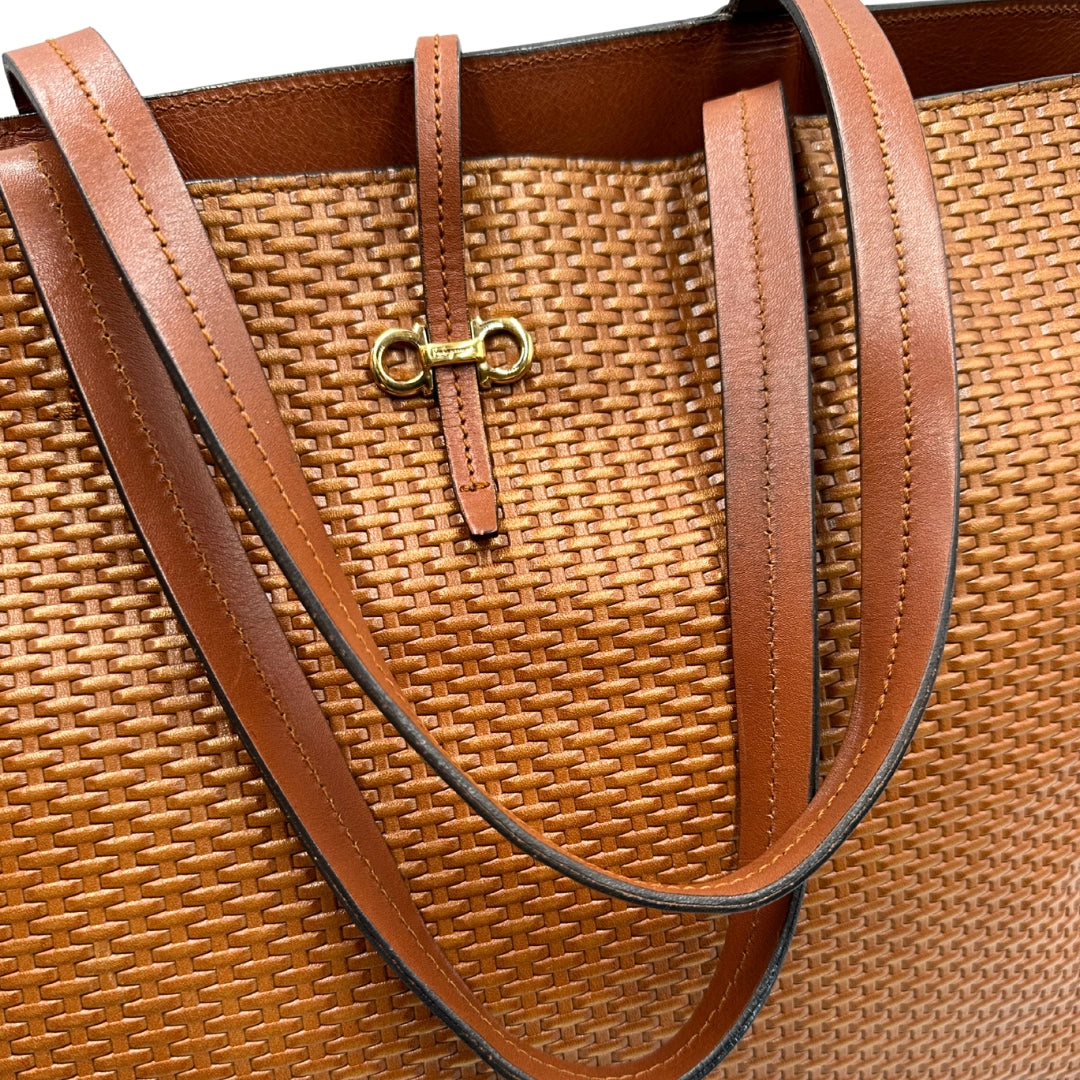 Descrizione: Shopper Salvatore Ferragamo in pelle intrecciata marrone arancio con doppi manici e classico dettaglio logo Gancini in metallo dorato. Completa di dustbag