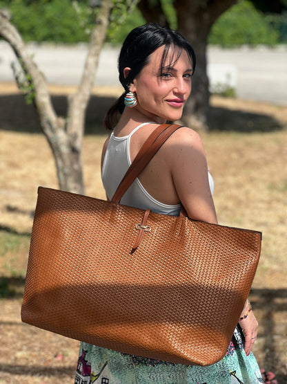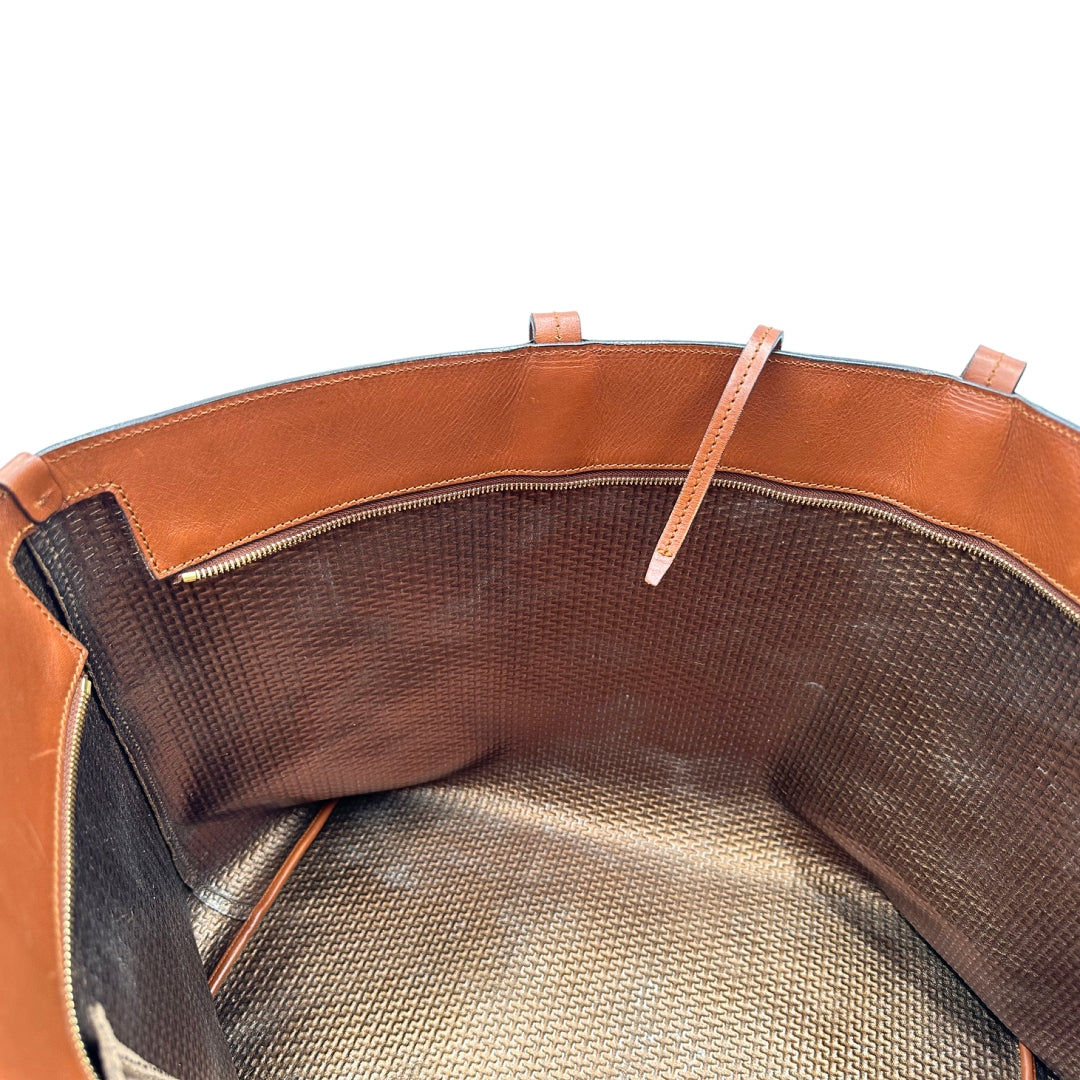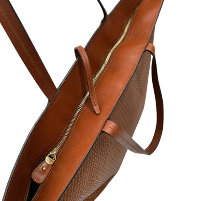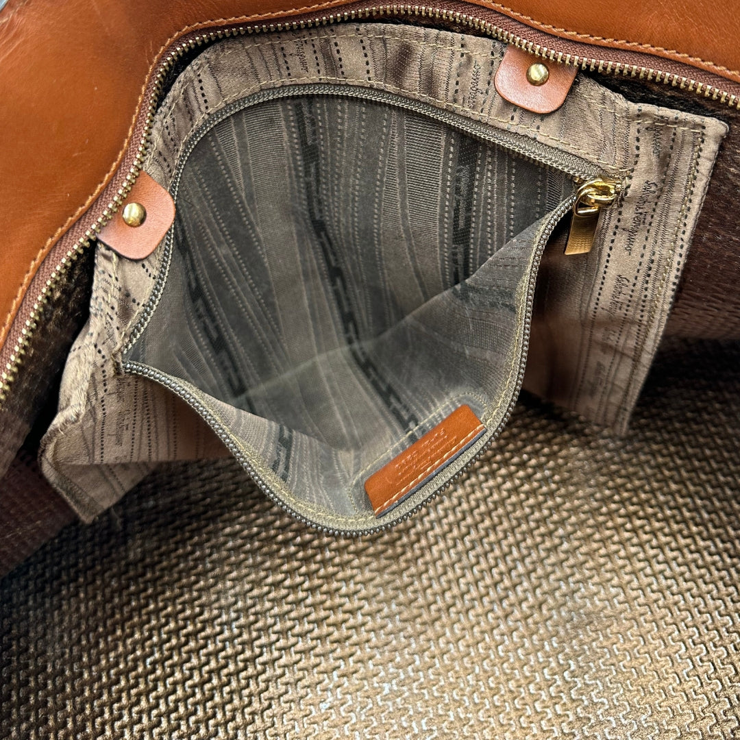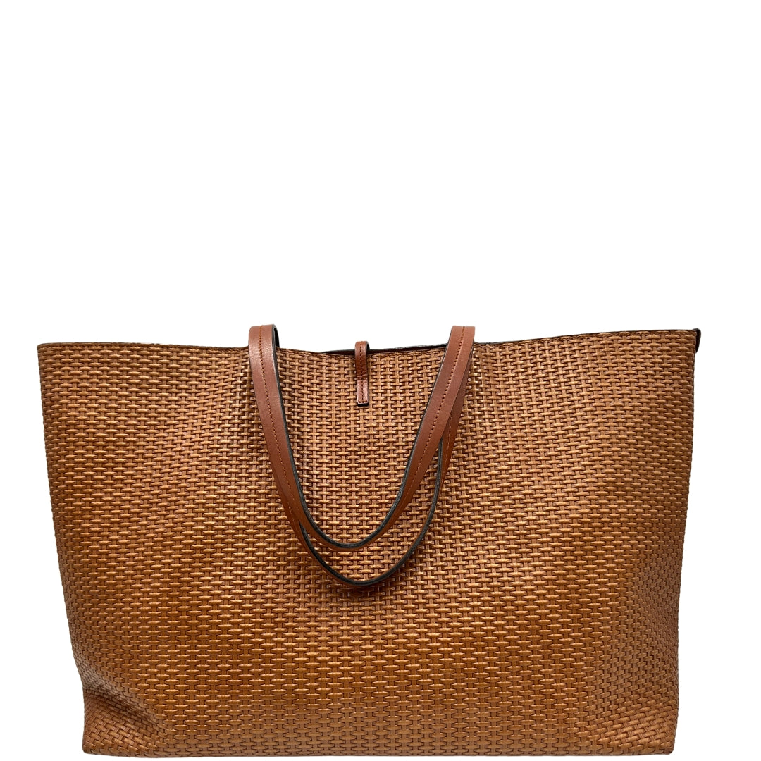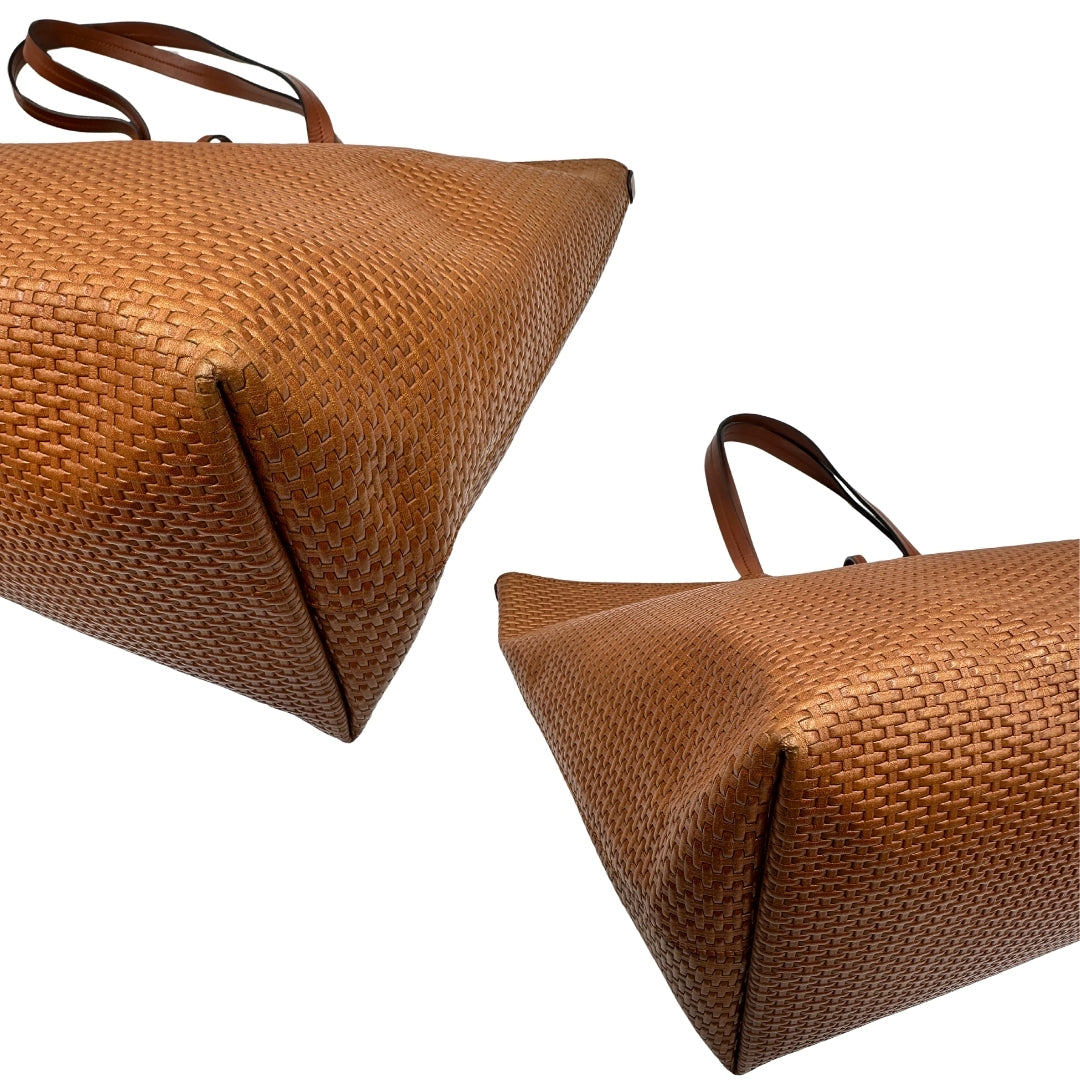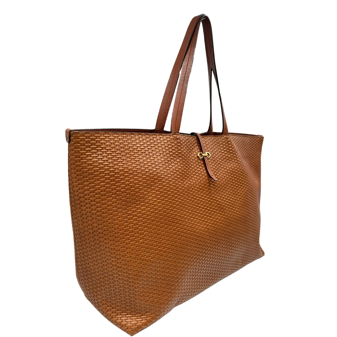 Descrizione: Shopper Salvatore Ferragamo in pelle intrecciata marrone arancio con doppi manici e classico dettaglio logo Gancini in metallo dorato. Completa di dustbag