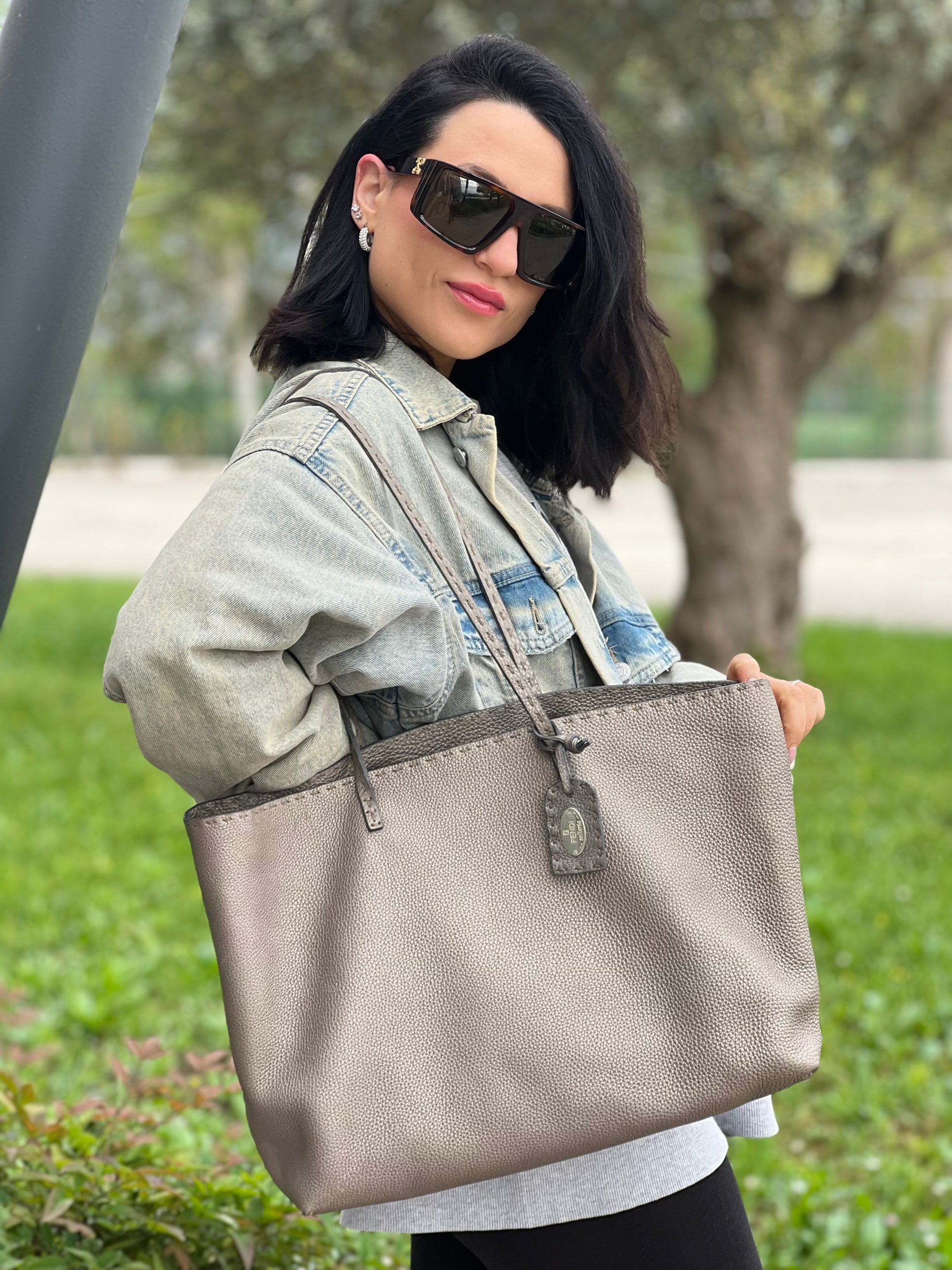 Descrizione: Borsa Fendi in pelle martellata argentata con parti metalliche tono su tono; munita di doppi manici. Completa di dustbag