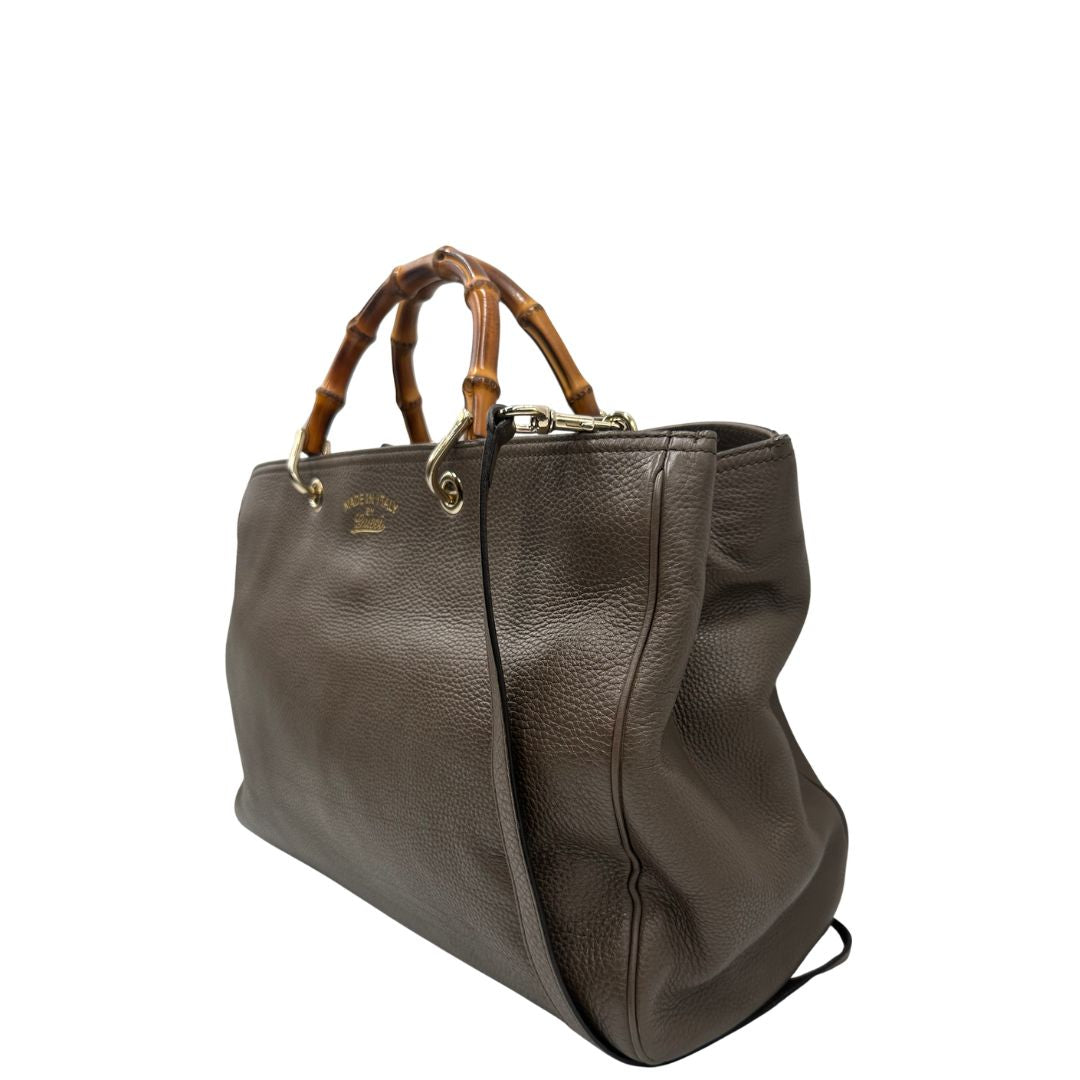 Descrizione: Borsa Gucci bamboo color fango con doppi manici bamboo.