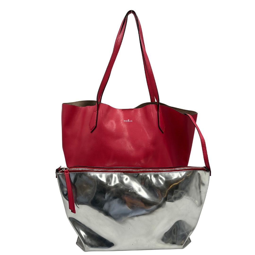 Descrizione: Borsa Hogan in pelle color rosa ciliegio munita di una pochette interna estraibile argentata; munita di doppi manici, indossabile a spalla. Completa di dustbag.