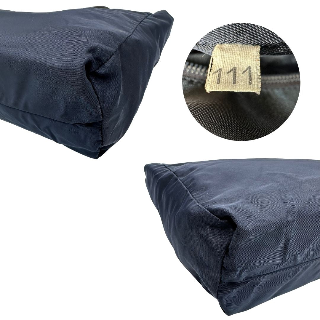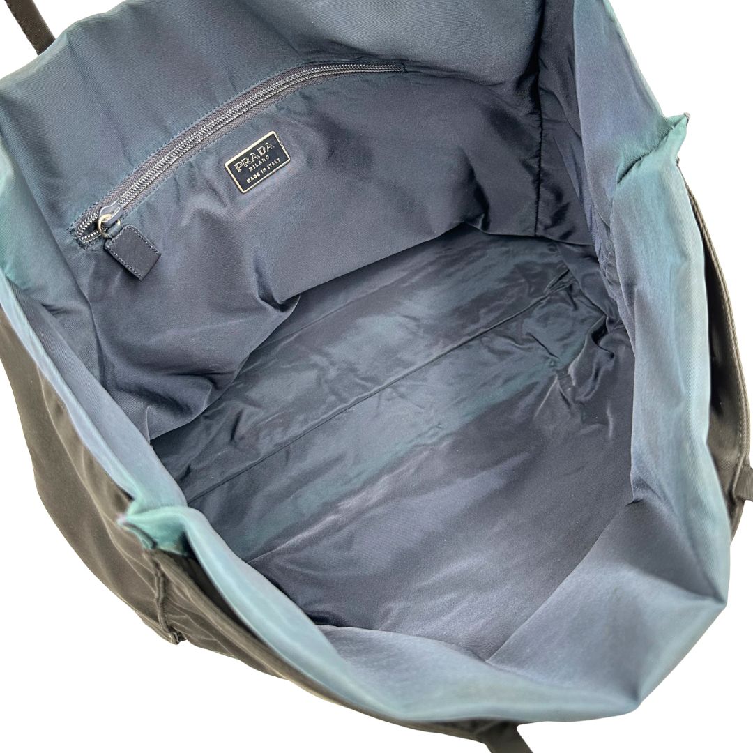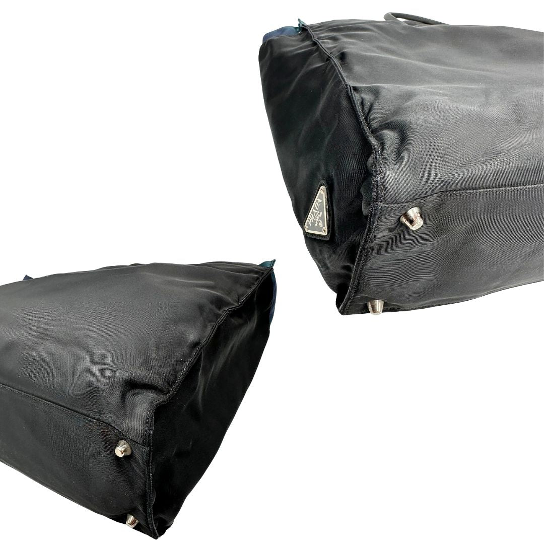 Descrizione: Borsa Prada in nylon nero e blu notte; munita di doppi manici stondati, indossabile a spalla.