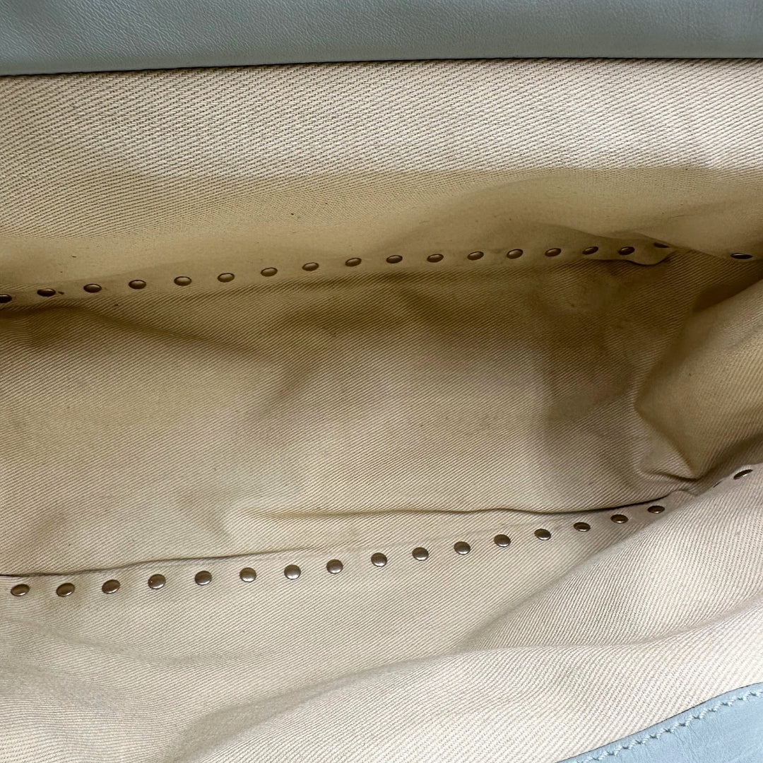 Descrizione: Borsa Valentino Garavani in pelle verde salvia rifinita con parti metalliche dorate; dotata di una tracolla amovibile e doppi manici. Da indossare a spalla o a tracolla.