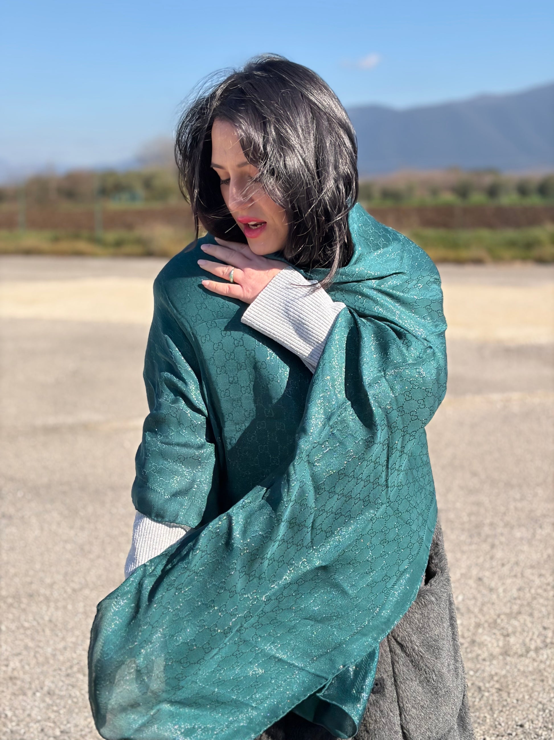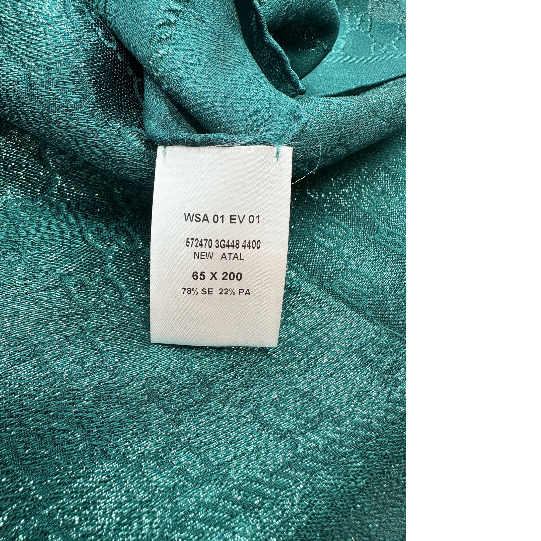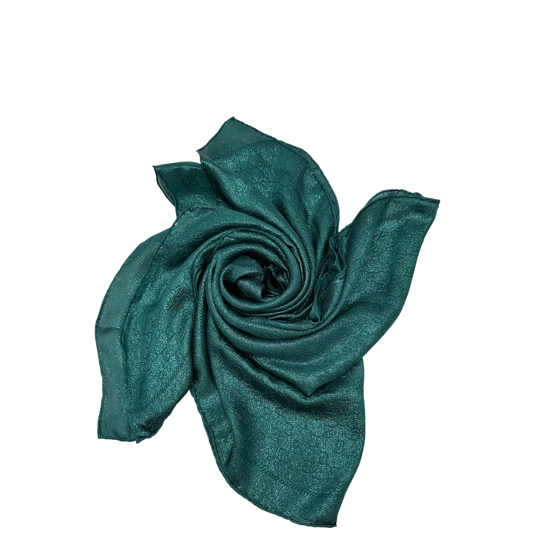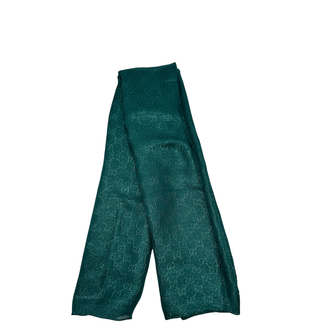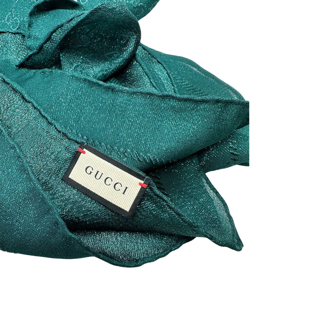 Descrizione: Stola Gucci  in misto seta e poliammide color verde smeraldo con trama GG.